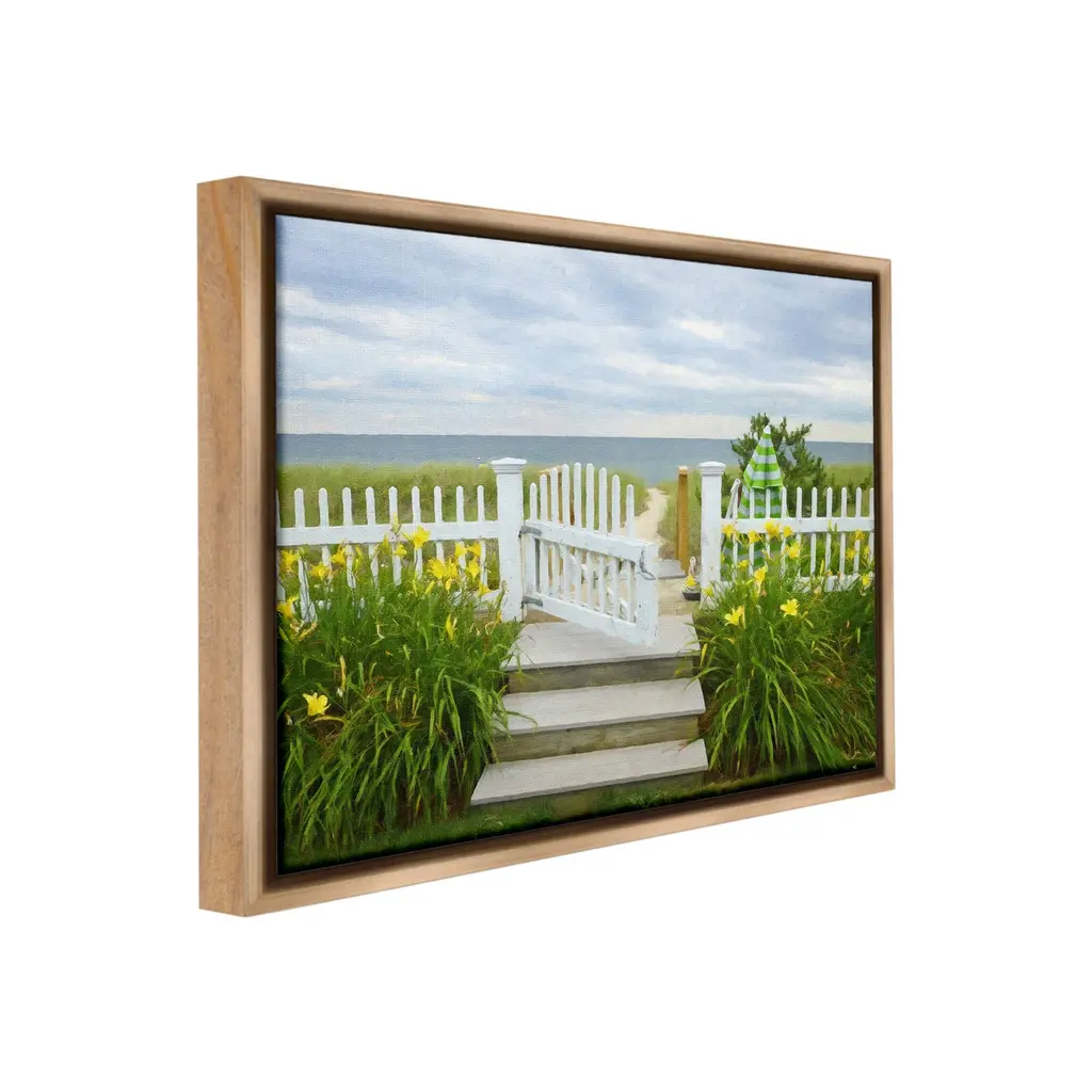 Elevate your home or office to the next level with Stupell Framed Floating Canvas Wall Art. Our premium hand-stretched canvas is mounted securely into a sturdy lightweight frame. The museum-style gap between the wrapped canvas and the box frame gives the illusion of floating artwork. Stupell Wall Art is made in the USA.Features: Dimensions: 21 x 1.7 x 17 Frame, 20 x 1.5 x 16 Canvas ArtFloating Frame Canvas Products are available in sizes 21"x17" and 31"x25". All Floating Frame Canvas Products have a 1.7" Depth.Wall Art is Ready to Hang with Hardware Free Hanging. No Installation required. For Easy Set Up Lean or Layer Artwork on Shelf or Against Wall. Artwork is Permently Fixed into the Frame.Our elevated 1.7" Thick Floating Frame is the perfect complement to our canvas style Wall Art. We use only the highest quality inks in house with industry leading printing solutions. Canvas is hand stretched over a durable wood foundation and then mounted securly into a Modern Box Frame. Made in the USA.Artwork Relates To: Beach, Ocean, Sea, Coast, Nautical, Fence, Gate, Flower, Floral, GardenDesign by GraffiTee Studios