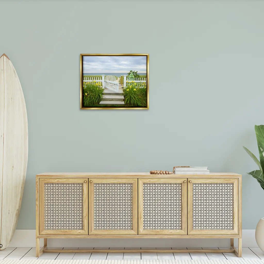 Stupell Garden Path To Beach Framed Floater Canvas Wall Art Design By Graffitee Studios - 31 X 25 - Gold