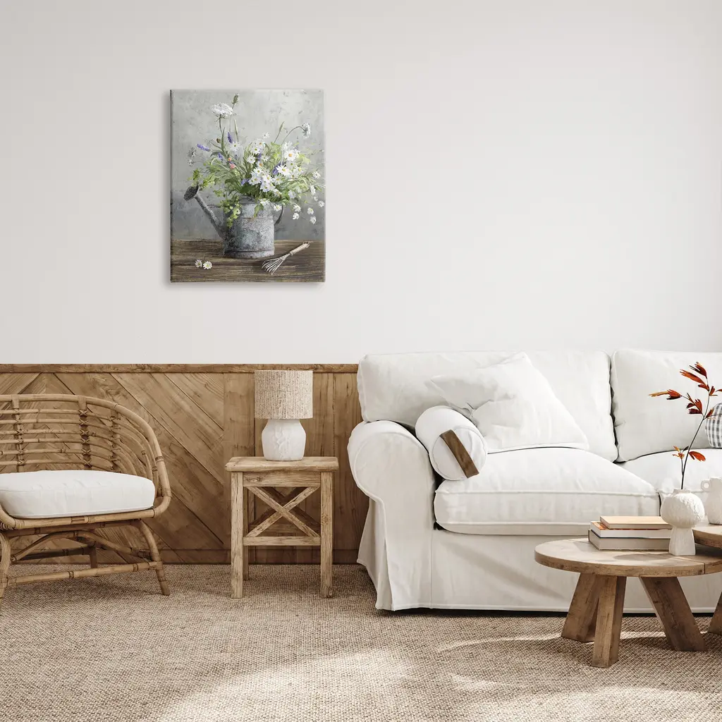 We create our stretched canvas to the highest standards. Using only the highest quality inks and canvas on Mimaki printers, we hand-cut and stretch each piece over a 1.5-inch thick wooden frame for hanging. As a result, the art comes ready to hang on the sturdy ledge with no installation required. Stupell Wall Art is made in the USA.Features: Dimensions: 16 x 1.5 x 20 InchesStretched Canvas Sizes Include Standard: 16 x 1.5 x 20 Large: 20 x 1.5 x 30 X-Large: 30 x 1.5 x 40 Oversized: 36 x 1.5 x 48Wall Art is Ready to Hang with Hardware Free Hanging. No installation required. For Easy Set Up Lean or Layer Artwork on Shelf or Against Wall.Our stretched canvas is created with the highest standards. We use only the highest quality inks and canvas on our in house Mimaki printers, and then hand cut and stretch each piece over a 1.5 inch thick wooden frame for hanging. Made In USA.Artwork Relates To: Painting, Flower, Plant, Vase, Flower Arrangement, Flower Bouquet, Floral, Watering Can, GardeningDesign by Danhui Nai