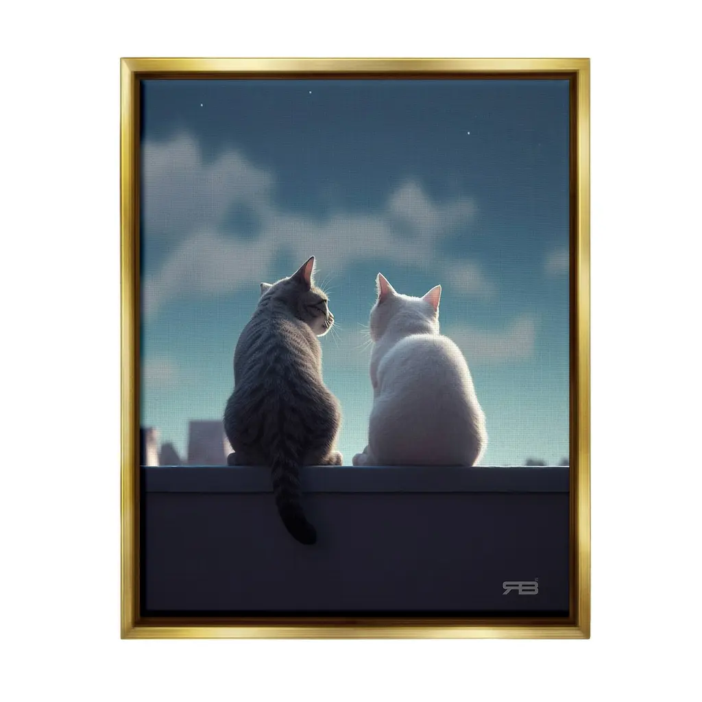Stupell Gazing Cat Pair Framed Floater Canvas Wall Art Design By Rb - 25 X 31 - Grey