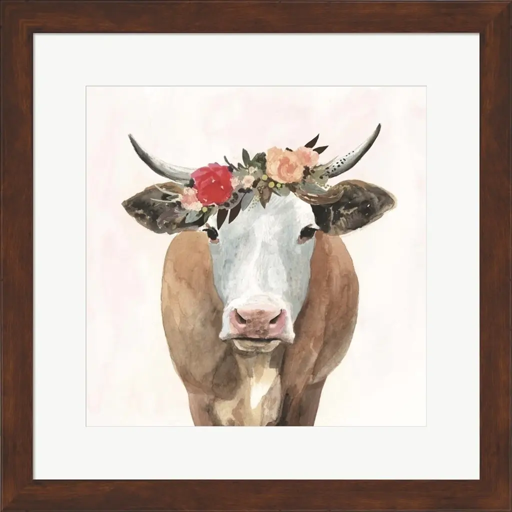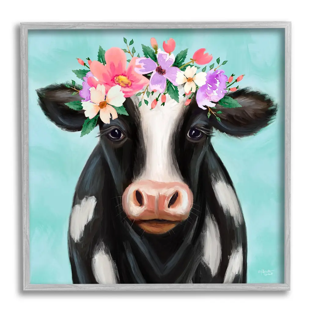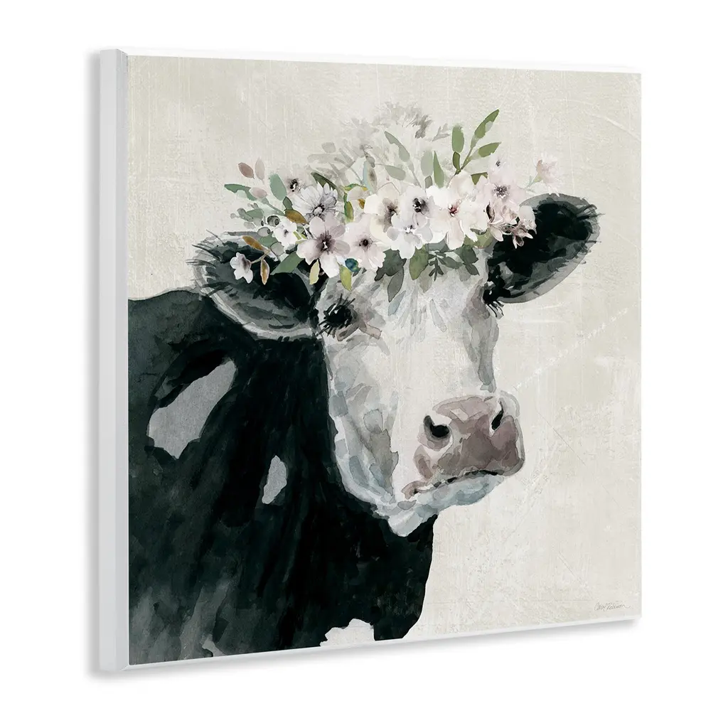 Stupell Gazing Cow With Florals Wall Plaque Art Design By Carol Robinson - 12 X 12
