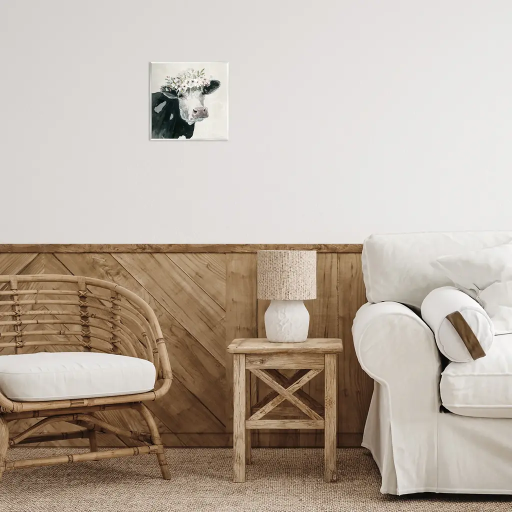 Our wall plaques start as high-quality lithograph prints mounted on durable 0.5-inch thick MDF wood. Each piece is hand finished and comes with a fresh layer of white foil on the sides to give it a crisp, clean look. Plaques arrive ready to hang without installation and come with removable plastic corners to keep them from damage in transit. Stupell Wall Art is made in the USA.Features: Dimensions: 12 x 0.5 x 12 InchesWall Art is Ready to Hang with Hardware Free Hanging. No installation required. For Easy Set Up Lean or Layer Artwork on Shelf or Against Wall.All of our wall plaques start off as high quality lithograph prints that are then mounted on durable 0.5 inch thick MDF wood. Each piece is hand finished and comes with a fresh layer of foil on the sides to give it a crisp clean look. Made In USA.Artwork Relates To: Plant, Animal, Cattle, Cow, Mammal, Flower, Farm, CountryDesign by Carol Robinson