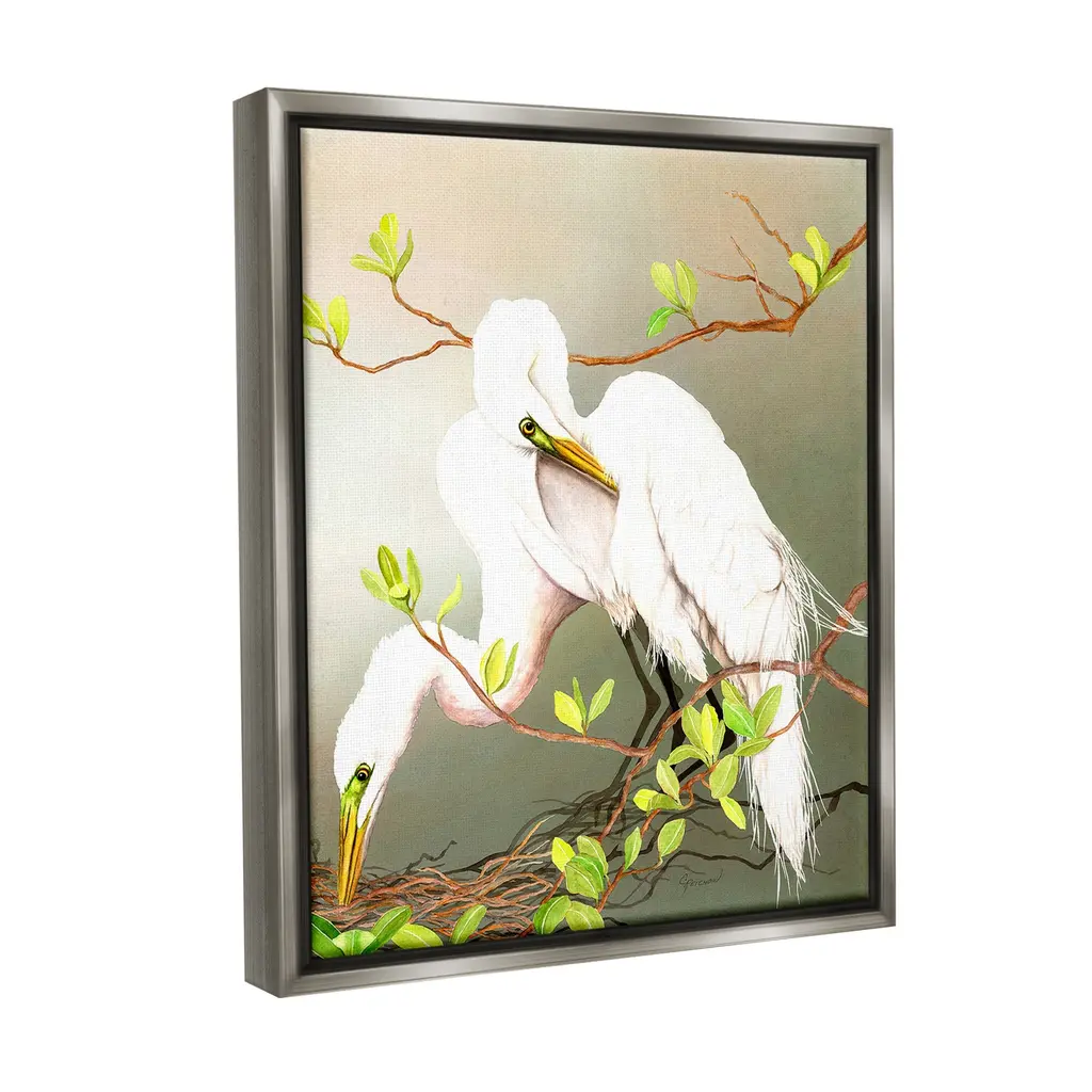 Elevate your home or office to the next level with Stupell Framed Floating Canvas Wall Art. Our premium hand-stretched canvas is mounted securely into a sturdy lightweight frame. The museum-style gap between the wrapped canvas and the box frame gives the illusion of floating artwork. Stupell Wall Art is made in the USA.Features: Dimensions: 17 x 1.7 x 21 Frame, 16 x 1.5 x 20 Canvas ArtFloating Frame Canvas Products are available in sizes 17"x21" and 25"x31". All Floating Frame Canvas Products have a 1.7" Depth.Wall Art is Ready to Hang with Hardware Free Hanging. No Installation required. For Easy Set Up Lean or Layer Artwork on Shelf or Against Wall. Artwork is Permently Fixed into the Frame.Our elevated 1.7" Thick Floating Frame is the perfect complement to our canvas style Wall Art. We use only the highest quality inks in house with industry leading printing solutions. Canvas is hand stretched over a durable wood foundation and then mounted securly into a Modern Box Frame. Made in the USA.Artwork Relates To: Animal, Bird, Waterfowl, Crane Bird, Heron, Egret, Nature, Branch, Leaf, TreeDesign by Christine Reichow
