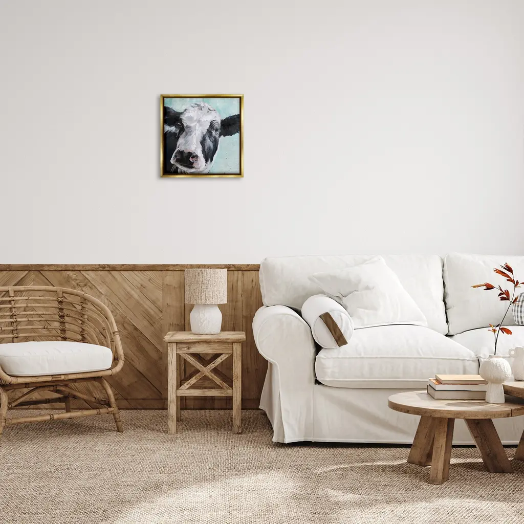 Elevate your home or office to the next level with Stupell Framed Floating Canvas Wall Art. Our premium hand-stretched canvas is mounted securely into a sturdy lightweight frame. The museum-style gap between the wrapped canvas and the box frame gives the illusion of floating artwork. Stupell Wall Art is made in the USA.Features: Dimensions: 18 x 1.7 x 18 Frame, 17 x 1.5 x 17 Canvas ArtFloating Frame Canvas Products are available in sizes 18"x18" and 25"x25". All Floating Frame Canvas Products have a 1.7" Depth.Wall Art is Ready to Hang with Hardware Free Hanging. No Installation required. For Easy Set Up Lean or Layer Artwork on Shelf or Against Wall. Artwork is Permently Fixed into the Frame.Our elevated 1.7" Thick Floating Frame is the perfect complement to our canvas style Wall Art. We use only the highest quality inks in house with industry leading printing solutions. Canvas is hand stretched over a durable wood foundation and then mounted securly into a Modern Box Frame. Made in the USA.Artwork Relates To: Animal, Farm, Country, Cow, Calf, Cattle, Farmhouse, CountryDesign by Main Line Art & Design