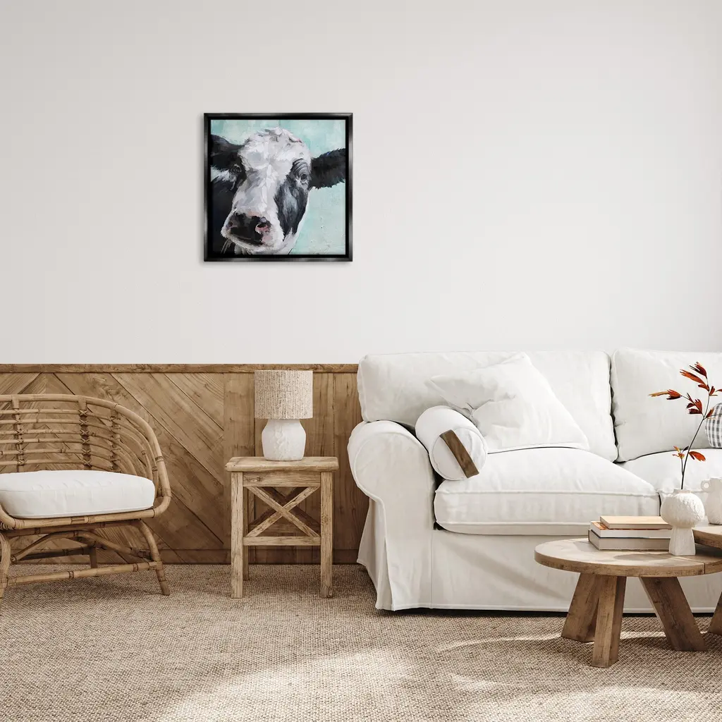 Elevate your home or office to the next level with Stupell Framed Floating Canvas Wall Art. Our premium hand-stretched canvas is mounted securely into a sturdy lightweight frame. The museum-style gap between the wrapped canvas and the box frame gives the illusion of floating artwork. Stupell Wall Art is made in the USA.Features: Dimensions: 18 x 1.7 x 18 Frame, 17 x 1.5 x 17 Canvas ArtFloating Frame Canvas Products are available in sizes 18"x18" and 25"x25". All Floating Frame Canvas Products have a 1.7" Depth.Wall Art is Ready to Hang with Hardware Free Hanging. No Installation required. For Easy Set Up Lean or Layer Artwork on Shelf or Against Wall. Artwork is Permently Fixed into the Frame.Our elevated 1.7" Thick Floating Frame is the perfect complement to our canvas style Wall Art. We use only the highest quality inks in house with industry leading printing solutions. Canvas is hand stretched over a durable wood foundation and then mounted securly into a Modern Box Frame. Made in the USA.Artwork Relates To: Animal, Farm, Country, Cow, Calf, Cattle, Farmhouse, CountryDesign by Main Line Art & Design