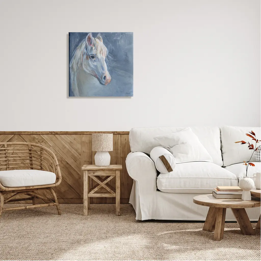 We create our stretched canvas to the highest standards. Using only the highest quality inks and canvas on Mimaki printers, we hand-cut and stretch each piece over a 1.5-inch thick wooden frame for hanging. As a result, the art comes ready to hang on the sturdy ledge with no installation required. Stupell Wall Art is made in the USA.Features: Dimensions: 17 x 1.5 x 17 InchesStretched Canvas Sizes Include Standard: 17 x 1.5 x 17 Large: 24 x 1.5 x 24 X-Large: 30 x 1.5 x 30 Oversized: 36 x 1.5 x 36Wall Art is Ready to Hang with Hardware Free Hanging. No installation required. For Easy Set Up Lean or Layer Artwork on Shelf or Against Wall.Our stretched canvas is created with the highest standards. We use only the highest quality inks and canvas on our in house Mimaki printers, and then hand cut and stretch each piece over a 1.5 inch thick wooden frame for hanging. Made In USA.Artwork Relates To: Animal, Horse, Mammal, Painting, Stallion, Andalusian Horse, Colt HorseDesign by Sue Schlabach