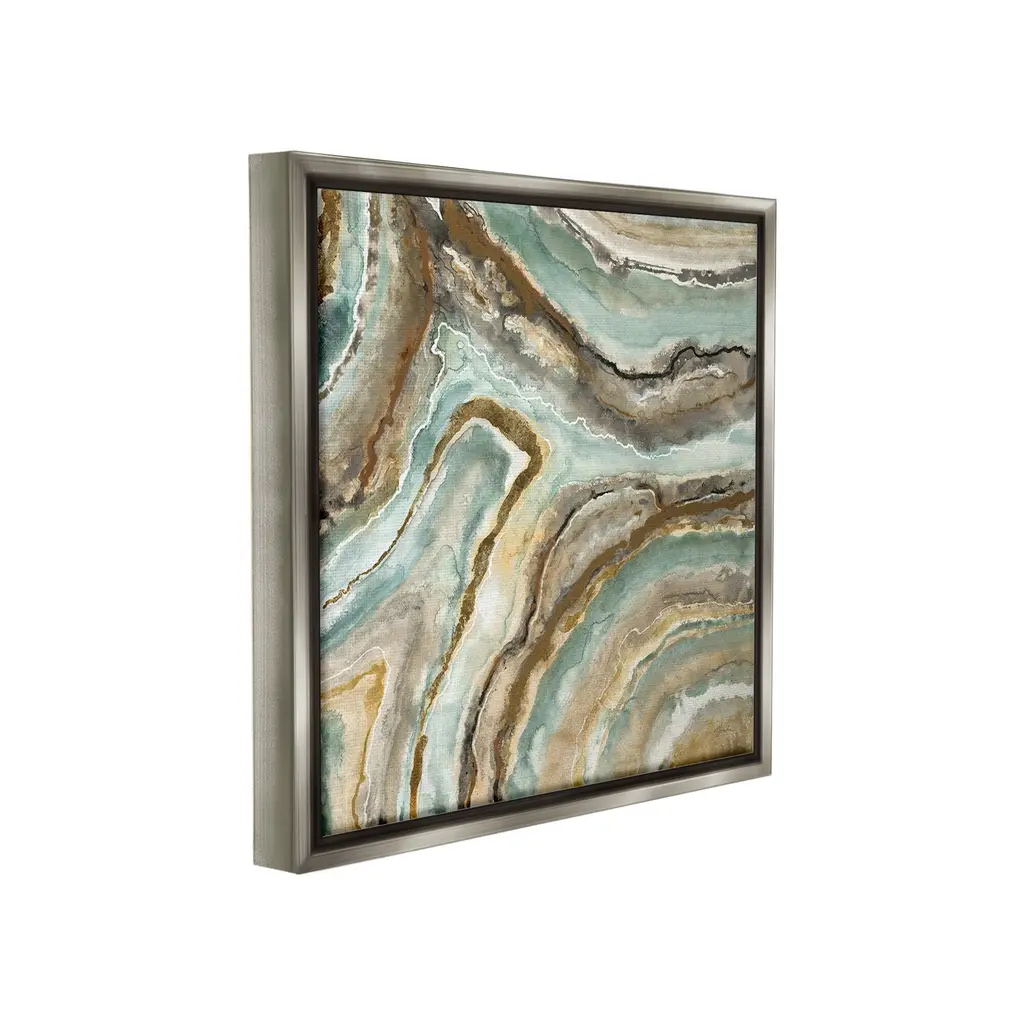 Elevate your home or office to the next level with Stupell Framed Floating Canvas Wall Art. Our premium hand-stretched canvas is mounted securely into a sturdy lightweight frame. The museum-style gap between the wrapped canvas and the box frame gives the illusion of floating artwork. Stupell Wall Art is made in the USA.Features: Dimensions: 18 x 1.7 x 18 Frame, 17 x 1.5 x 17 Canvas ArtFloating Frame Canvas Products are available in sizes 18"x18" and 25"x25". All Floating Frame Canvas Products have a 1.7" Depth.Wall Art is Ready to Hang with Hardware Free Hanging. No Installation required. For Easy Set Up Lean or Layer Artwork on Shelf or Against Wall. Artwork is Permently Fixed into the Frame.Our elevated 1.7" Thick Floating Frame is the perfect complement to our canvas style Wall Art. We use only the highest quality inks in house with industry leading printing solutions. Canvas is hand stretched over a durable wood foundation and then mounted securly into a Modern Box Frame. Made in the USA.Artwork Relates To: Agate, Pattern, Rock, Mineral, Pattern, Geode, Nature, AbstractDesign by Liz Jardine