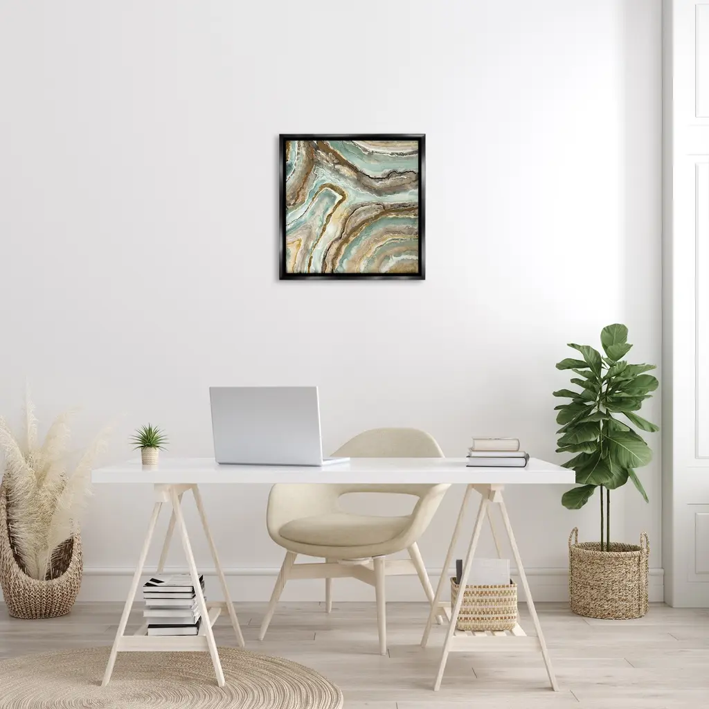 Elevate your home or office to the next level with Stupell Framed Floating Canvas Wall Art. Our premium hand-stretched canvas is mounted securely into a sturdy lightweight frame. The museum-style gap between the wrapped canvas and the box frame gives the illusion of floating artwork. Stupell Wall Art is made in the USA.Features: Dimensions: 18 x 1.7 x 18 Frame, 17 x 1.5 x 17 Canvas ArtFloating Frame Canvas Products are available in sizes 18"x18" and 25"x25". All Floating Frame Canvas Products have a 1.7" Depth.Wall Art is Ready to Hang with Hardware Free Hanging. No Installation required. For Easy Set Up Lean or Layer Artwork on Shelf or Against Wall. Artwork is Permently Fixed into the Frame.Our elevated 1.7" Thick Floating Frame is the perfect complement to our canvas style Wall Art. We use only the highest quality inks in house with industry leading printing solutions. Canvas is hand stretched over a durable wood foundation and then mounted securly into a Modern Box Frame. Made in the USA.Artwork Relates To: Agate, Pattern, Rock, Mineral, Pattern, Geode, Nature, AbstractDesign by Liz Jardine