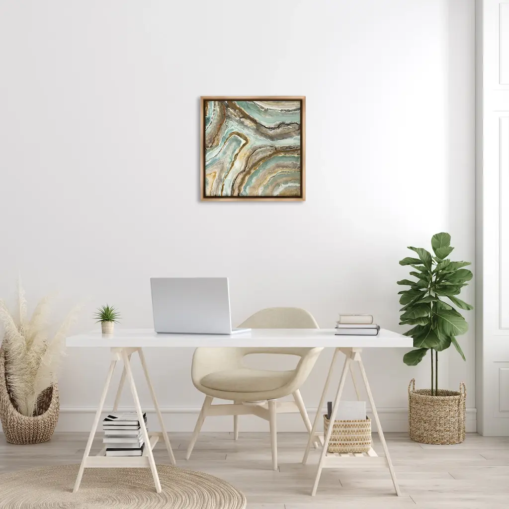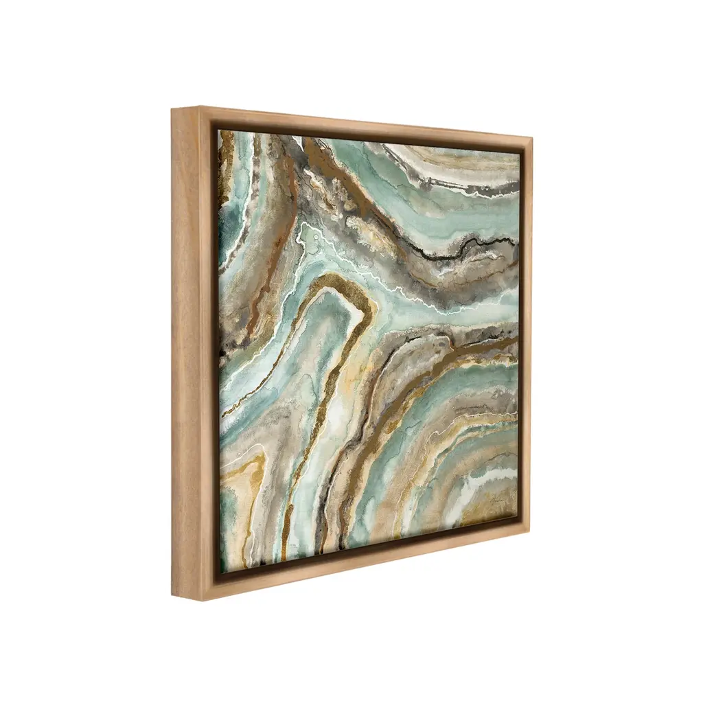 Elevate your home or office to the next level with Stupell Framed Floating Canvas Wall Art. Our premium hand-stretched canvas is mounted securely into a sturdy lightweight frame. The museum-style gap between the wrapped canvas and the box frame gives the illusion of floating artwork. Stupell Wall Art is made in the USA.Features: Dimensions: 18 x 1.7 x 18 Frame, 17 x 1.5 x 17 Canvas ArtFloating Frame Canvas Products are available in sizes 18"x18" and 25"x25". All Floating Frame Canvas Products have a 1.7" Depth.Wall Art is Ready to Hang with Hardware Free Hanging. No Installation required. For Easy Set Up Lean or Layer Artwork on Shelf or Against Wall. Artwork is Permently Fixed into the Frame.Our elevated 1.7" Thick Floating Frame is the perfect complement to our canvas style Wall Art. We use only the highest quality inks in house with industry leading printing solutions. Canvas is hand stretched over a durable wood foundation and then mounted securly into a Modern Box Frame. Made in the USA.Artwork Relates To: Agate, Pattern, Rock, Mineral, Pattern, Geode, Nature, AbstractDesign by Liz Jardine