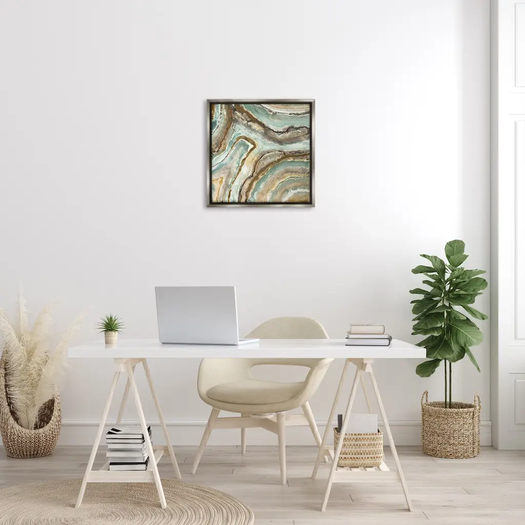 Elevate your home or office to the next level with Stupell Framed Floating Canvas Wall Art. Our premium hand-stretched canvas is mounted securely into a sturdy lightweight frame. The museum-style gap between the wrapped canvas and the box frame gives the illusion of floating artwork. Stupell Wall Art is made in the USA.Features: Dimensions: 18 x 1.7 x 18 Frame, 17 x 1.5 x 17 Canvas ArtFloating Frame Canvas Products are available in sizes 18"x18" and 25"x25". All Floating Frame Canvas Products have a 1.7" Depth.Wall Art is Ready to Hang with Hardware Free Hanging. No Installation required. For Easy Set Up Lean or Layer Artwork on Shelf or Against Wall. Artwork is Permently Fixed into the Frame.Our elevated 1.7" Thick Floating Frame is the perfect complement to our canvas style Wall Art. We use only the highest quality inks in house with industry leading printing solutions. Canvas is hand stretched over a durable wood foundation and then mounted securly into a Modern Box Frame. Made in the USA.Artwork Relates To: Agate, Pattern, Rock, Mineral, Pattern, Geode, Nature, AbstractDesign by Liz Jardine