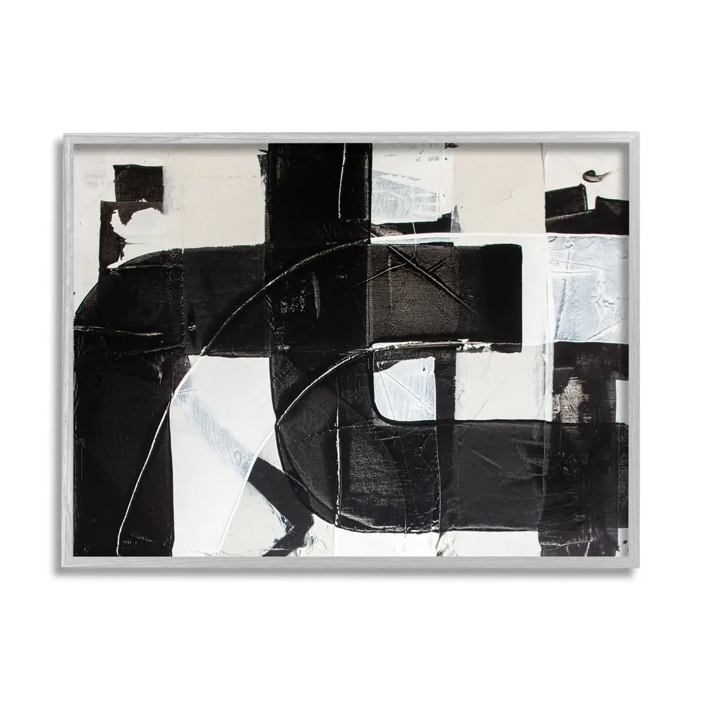 Stupell Geometric Black White Abstract Industrial Shapes Framed Wall Art - 16 X 20 - White