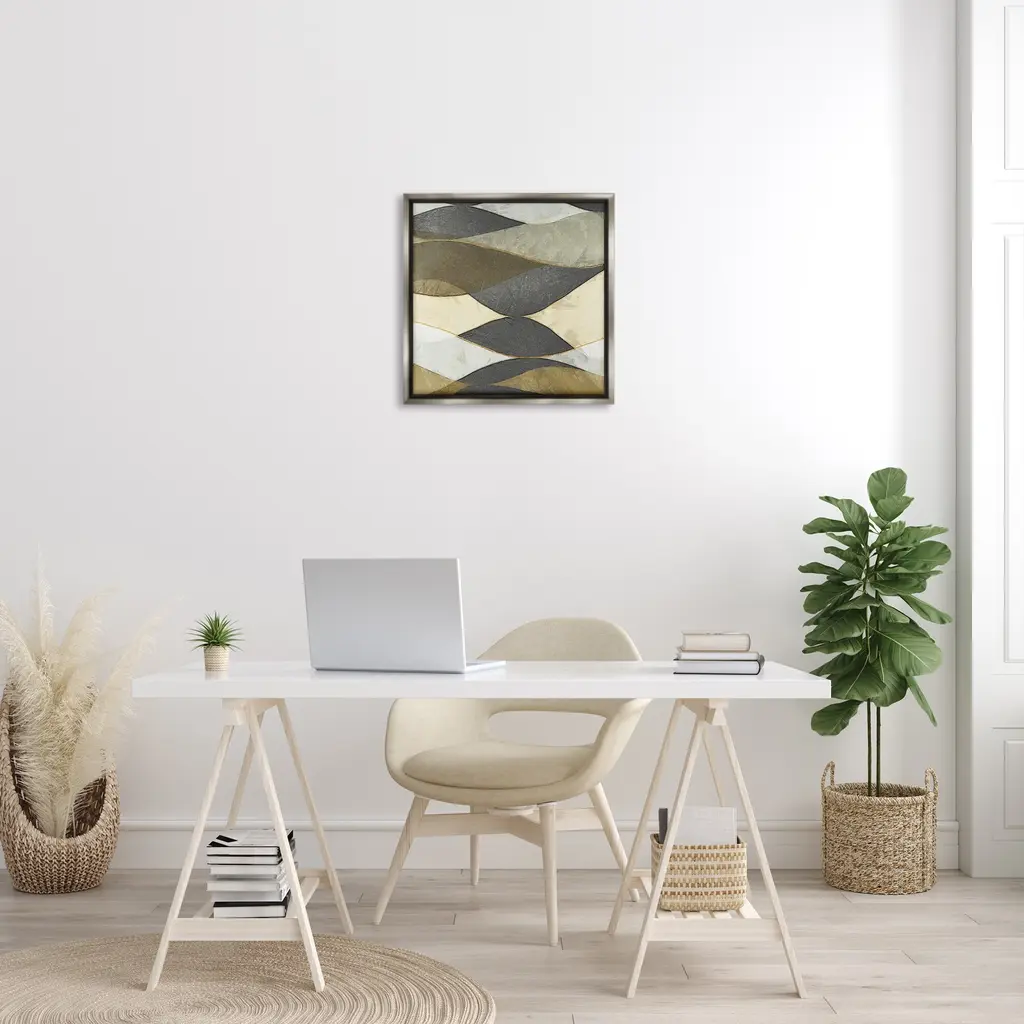 Elevate your home or office to the next level with Stupell Framed Floating Canvas Wall Art. Our premium hand-stretched canvas is mounted securely into a sturdy lightweight frame. The museum-style gap between the wrapped canvas and the box frame gives the illusion of floating artwork. Stupell Wall Art is made in the USA.Features: Dimensions: 18 x 1.7 x 18 Frame, 17 x 1.5 x 17 Canvas ArtFloating Frame Canvas Products are available in sizes 18"x18" and 25"x25". All Floating Frame Canvas Products have a 1.7" Depth.Wall Art is Ready to Hang with Hardware Free Hanging. No Installation required. For Easy Set Up Lean or Layer Artwork on Shelf or Against Wall. Artwork is Permently Fixed into the Frame.Our elevated 1.7" Thick Floating Frame is the perfect complement to our canvas style Wall Art. We use only the highest quality inks in house with industry leading printing solutions. Canvas is hand stretched over a durable wood foundation and then mounted securly into a Modern Box Frame. Made in the USA.Artwork Relates To: Abstract, Modern, Landscape, Southwestern, Desert, Neutral, Geometric, ShapesDesign by Alonzo Saunders