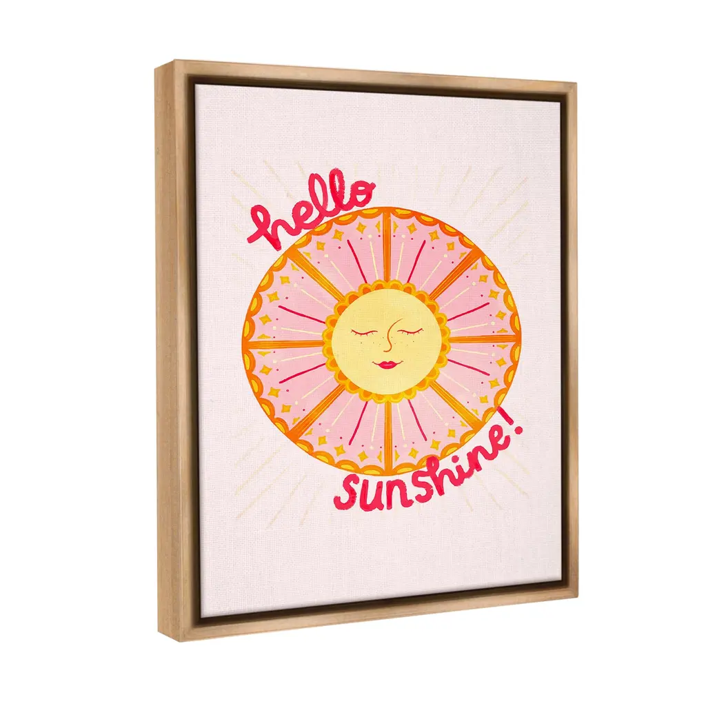 Elevate your home or office to the next level with Stupell Framed Floating Canvas Wall Art. Our premium hand-stretched canvas is mounted securely into a sturdy lightweight frame. The museum-style gap between the wrapped canvas and the box frame gives the illusion of floating artwork. Stupell Wall Art is made in the USA.Features: Dimensions: 17 x 1.7 x 21 Frame, 16 x 1.5 x 20 Canvas ArtFloating Frame Canvas Products are available in sizes 17"x21" and 25"x31". All Floating Frame Canvas Products have a 1.7" Depth.Wall Art is Ready to Hang with Hardware Free Hanging. No Installation required. For Easy Set Up Lean or Layer Artwork on Shelf or Against Wall. Artwork is Permently Fixed into the Frame.Our elevated 1.7" Thick Floating Frame is the perfect complement to our canvas style Wall Art. We use only the highest quality inks in house with industry leading printing solutions. Canvas is hand stretched over a durable wood foundation and then mounted securly into a Modern Box Frame. Made in the USA.Artwork Relates To: Celestial, Sun, Nature, Smile, Greeting, Abstract, Geometric, Hello SunshineDesign by Glad You're Here Co.