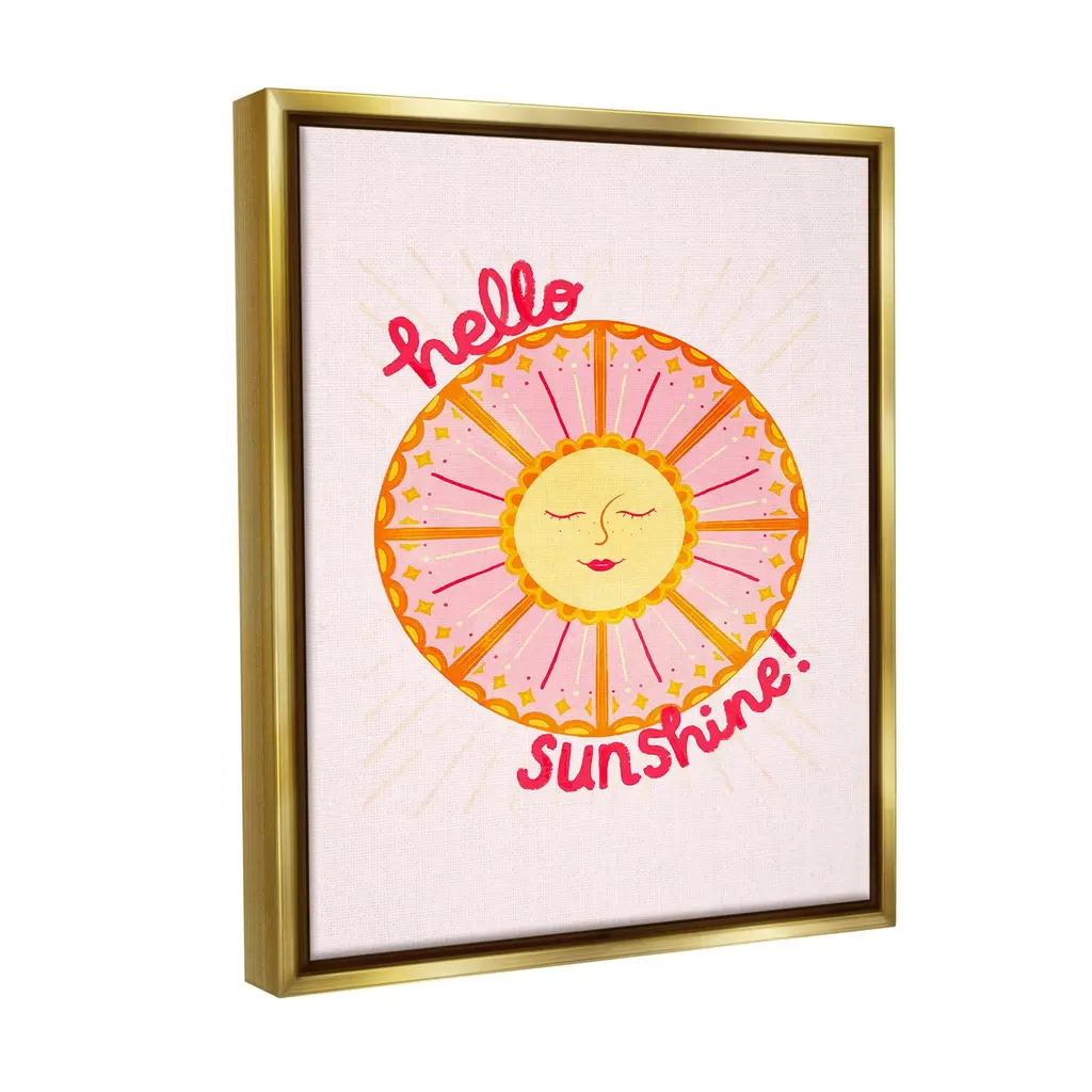 Elevate your home or office to the next level with Stupell Framed Floating Canvas Wall Art. Our premium hand-stretched canvas is mounted securely into a sturdy lightweight frame. The museum-style gap between the wrapped canvas and the box frame gives the illusion of floating artwork. Stupell Wall Art is made in the USA.Features: Dimensions: 17 x 1.7 x 21 Frame, 16 x 1.5 x 20 Canvas ArtFloating Frame Canvas Products are available in sizes 17"x21" and 25"x31". All Floating Frame Canvas Products have a 1.7" Depth.Wall Art is Ready to Hang with Hardware Free Hanging. No Installation required. For Easy Set Up Lean or Layer Artwork on Shelf or Against Wall. Artwork is Permently Fixed into the Frame.Our elevated 1.7" Thick Floating Frame is the perfect complement to our canvas style Wall Art. We use only the highest quality inks in house with industry leading printing solutions. Canvas is hand stretched over a durable wood foundation and then mounted securly into a Modern Box Frame. Made in the USA.Artwork Relates To: Celestial, Sun, Nature, Smile, Greeting, Abstract, Geometric, Hello SunshineDesign by Glad You're Here Co.