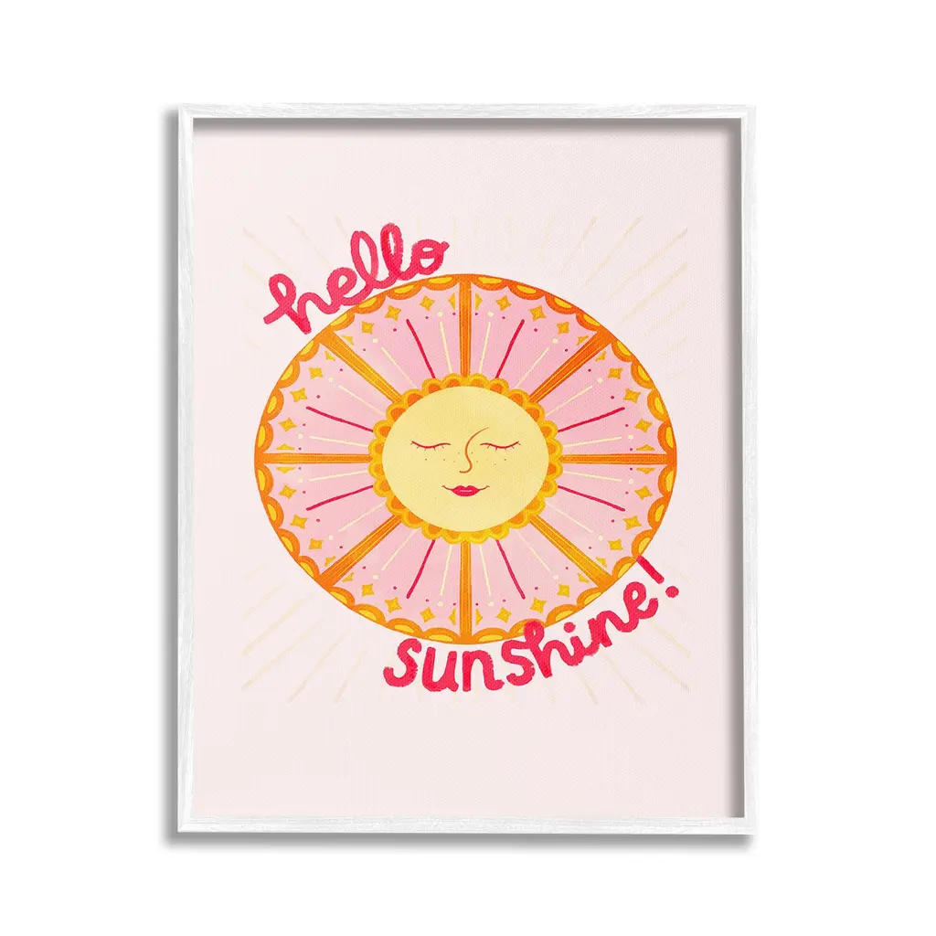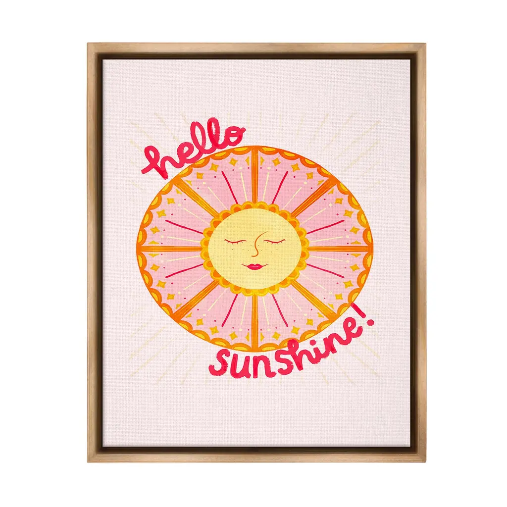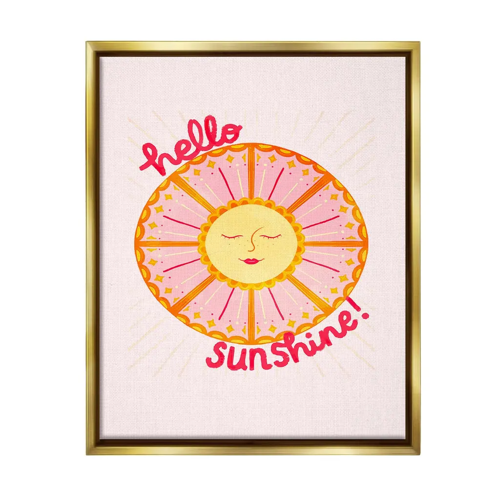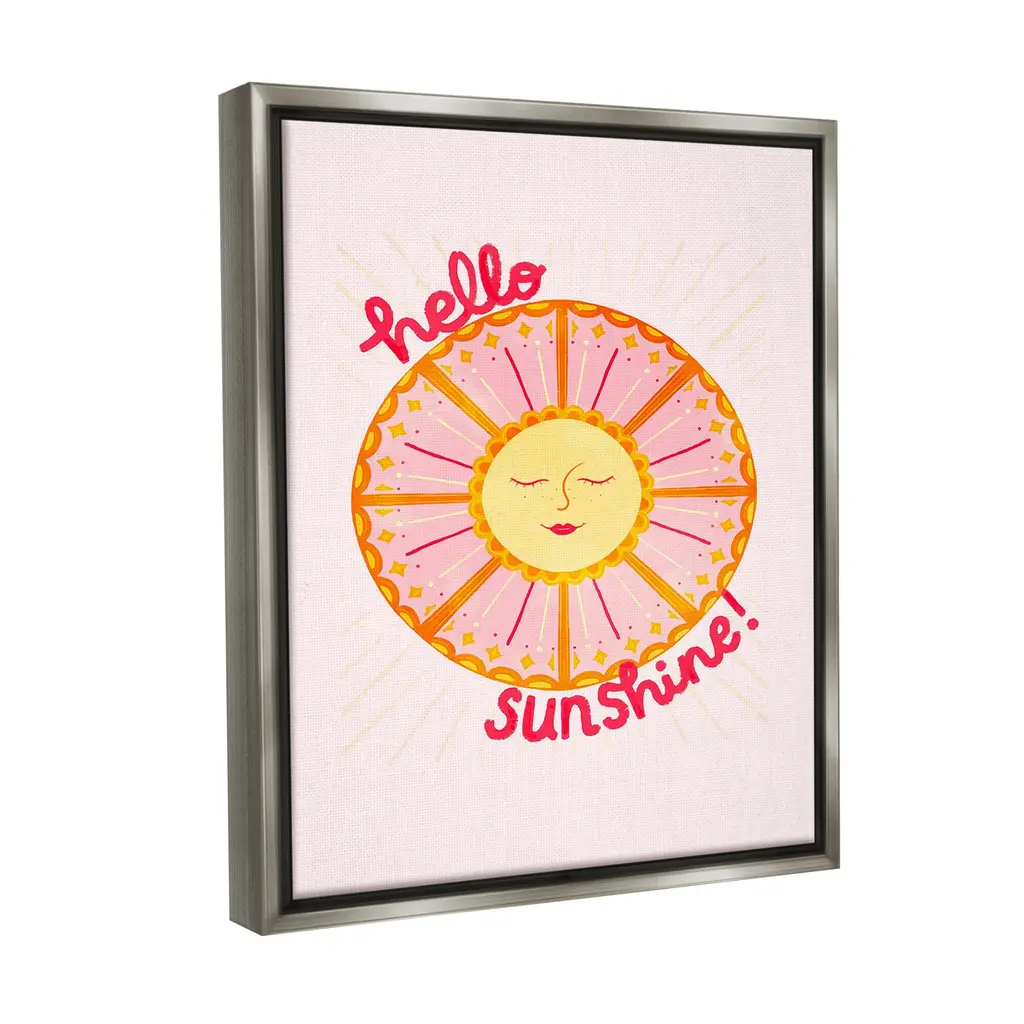 Elevate your home or office to the next level with Stupell Framed Floating Canvas Wall Art. Our premium hand-stretched canvas is mounted securely into a sturdy lightweight frame. The museum-style gap between the wrapped canvas and the box frame gives the illusion of floating artwork. Stupell Wall Art is made in the USA.Features: Dimensions: 17 x 1.7 x 21 Frame, 16 x 1.5 x 20 Canvas ArtFloating Frame Canvas Products are available in sizes 17"x21" and 25"x31". All Floating Frame Canvas Products have a 1.7" Depth.Wall Art is Ready to Hang with Hardware Free Hanging. No Installation required. For Easy Set Up Lean or Layer Artwork on Shelf or Against Wall. Artwork is Permently Fixed into the Frame.Our elevated 1.7" Thick Floating Frame is the perfect complement to our canvas style Wall Art. We use only the highest quality inks in house with industry leading printing solutions. Canvas is hand stretched over a durable wood foundation and then mounted securly into a Modern Box Frame. Made in the USA.Artwork Relates To: Celestial, Sun, Nature, Smile, Greeting, Abstract, Geometric, Hello SunshineDesign by Glad You're Here Co.