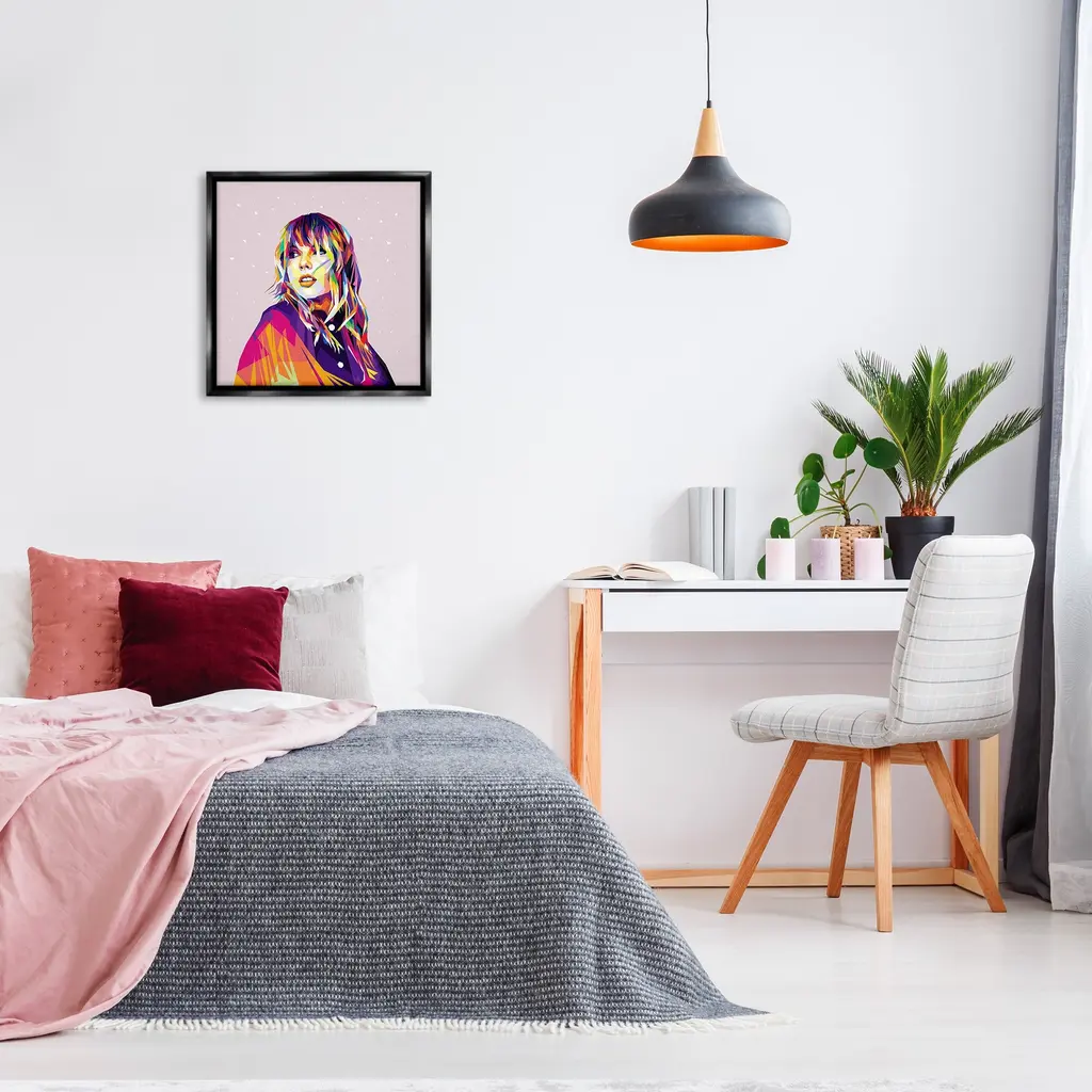 Elevate your home or office to the next level with Stupell Framed Floating Canvas Wall Art. Our premium hand-stretched canvas is mounted securely into a sturdy lightweight frame. The museum-style gap between the wrapped canvas and the box frame gives the illusion of floating artwork. Stupell Wall Art is made in the USA.Features: Dimensions: 18 x 1.7 x 18 Frame, 17 x 1.5 x 17 Canvas ArtFloating Frame Canvas Products are available in sizes 18"x18" and 25"x25". All Floating Frame Canvas Products have a 1.7" Depth.Wall Art is Ready to Hang with Hardware Free Hanging. No Installation required. For Easy Set Up Lean or Layer Artwork on Shelf or Against Wall. Artwork is Permently Fixed into the Frame.Our elevated 1.7" Thick Floating Frame is the perfect complement to our canvas style Wall Art. We use only the highest quality inks in house with industry leading printing solutions. Canvas is hand stretched over a durable wood foundation and then mounted securly into a Modern Box Frame. Made in the USA.Artwork Relates To: Modern, Face, Person, Portrait, Woman, Musician, Pop Culture, MusicDesign by Birch&Ink
