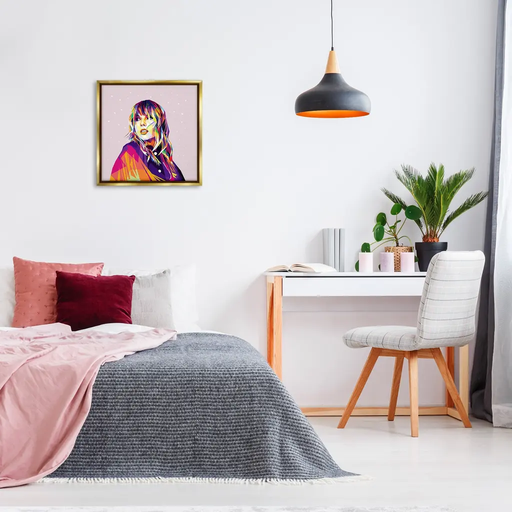 Elevate your home or office to the next level with Stupell Framed Floating Canvas Wall Art. Our premium hand-stretched canvas is mounted securely into a sturdy lightweight frame. The museum-style gap between the wrapped canvas and the box frame gives the illusion of floating artwork. Stupell Wall Art is made in the USA.Features: Dimensions: 18 x 1.7 x 18 Frame, 17 x 1.5 x 17 Canvas ArtFloating Frame Canvas Products are available in sizes 18"x18" and 25"x25". All Floating Frame Canvas Products have a 1.7" Depth.Wall Art is Ready to Hang with Hardware Free Hanging. No Installation required. For Easy Set Up Lean or Layer Artwork on Shelf or Against Wall. Artwork is Permently Fixed into the Frame.Our elevated 1.7" Thick Floating Frame is the perfect complement to our canvas style Wall Art. We use only the highest quality inks in house with industry leading printing solutions. Canvas is hand stretched over a durable wood foundation and then mounted securly into a Modern Box Frame. Made in the USA.Artwork Relates To: Modern, Face, Person, Portrait, Woman, Musician, Pop Culture, MusicDesign by Birch&Ink
