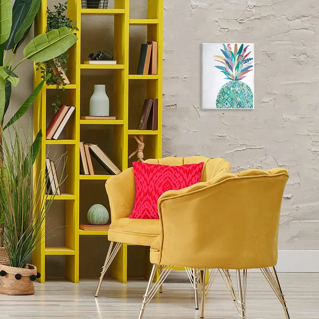 Our wall plaques start as high-quality lithograph prints mounted on durable 0.5-inch thick MDF wood. Each piece is hand finished and comes with a fresh layer of white foil on the sides to give it a crisp, clean look. Plaques arrive ready to hang without installation and come with removable plastic corners to keep them from damage in transit. Stupell Wall Art is made in the USA.Features: Dimensions: 11 x 0.5 x 14 InchesWall Art is Ready to Hang with Hardware Free Hanging. No installation required. For Easy Set Up Lean or Layer Artwork on Shelf or Against Wall.All of our wall plaques start off as high quality lithograph prints that are then mounted on durable 0.5 inch thick MDF wood. Each piece is hand finished and comes with a fresh layer of foil on the sides to give it a crisp clean look. Made In USA.Artwork Relates To: Food, Fruit, Pineapple, Plant, Produce, Abstract, Geometric, PatternDesign by Jennifer Peck