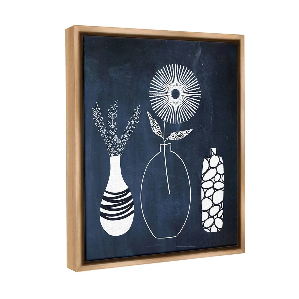Elevate your home or office to the next level with Stupell Framed Floating Canvas Wall Art. Our premium hand-stretched canvas is mounted securely into a sturdy lightweight frame. The museum-style gap between the wrapped canvas and the box frame gives the illusion of floating artwork. Stupell Wall Art is made in the USA.Features: Dimensions: 17 x 1.7 x 21 Frame, 16 x 1.5 x 20 Canvas ArtFloating Frame Canvas Products are available in sizes 17"x21" and 25"x31". All Floating Frame Canvas Products have a 1.7" Depth.Wall Art is Ready to Hang with Hardware Free Hanging. No Installation required. For Easy Set Up Lean or Layer Artwork on Shelf or Against Wall. Artwork is Permently Fixed into the Frame.Our elevated 1.7" Thick Floating Frame is the perfect complement to our canvas style Wall Art. We use only the highest quality inks in house with industry leading printing solutions. Canvas is hand stretched over a durable wood foundation and then mounted securly into a Modern Box Frame. Made in the USA.Artwork Relates To: Flower, Floral, Botanical, Vase, Abstract, Modern, Geometric, PatternDesign by Lisa Nohren