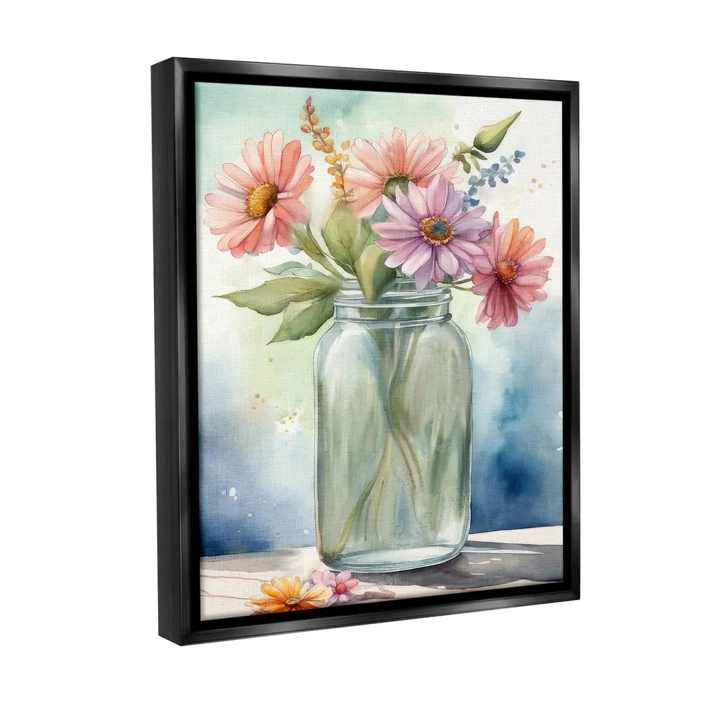 Stupell Gerbera Daisies In Jar Framed Floater Canvas Wall Art Design By Kim Allen - 25 X 31 - Black