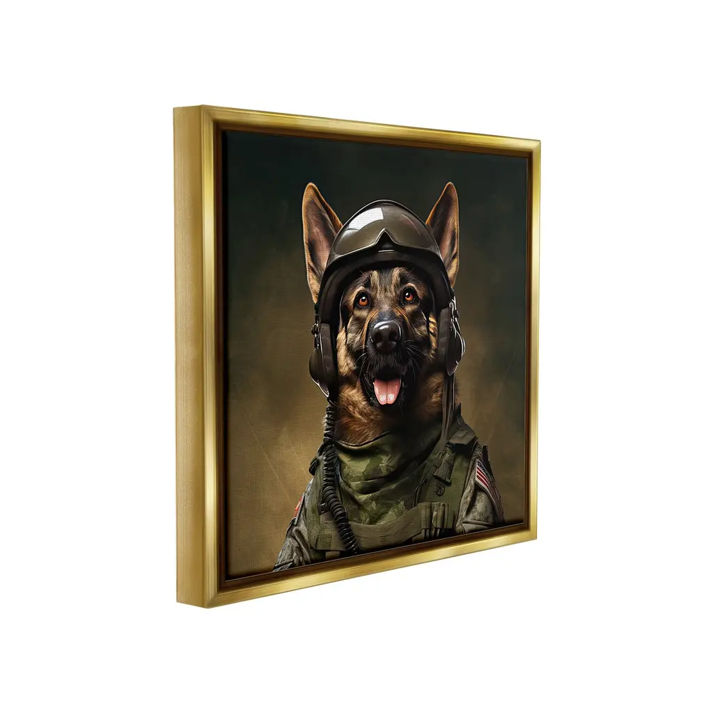 Stupell German Shepherd In Uniform Framed Floater Canvas Wall Art Design By Jim Baldwin - 18 X 18 - Gold