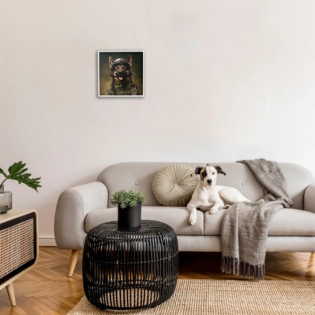 Add dimension to any room with our textured Framed Giclee Artwork. Our framed artwork is securely mounted into a 1.5-inch thick wood grain frame and ready to hang. Frames are available in three alluring styles: black, gray farmhouse and white. In addition, you should check out our oversized options if you want a statement piece. Stupell Wall Art is made in the USA.Features: Dimensions: 12 x 1.5 x 12 FramedFramed Giclee Product Sizes Include 12"x12", 17"x17", and 24"x24". Framed Giclee Products have a 1.5" Depth. Wall Art is Ready to Hang with Hardware Free Hanging. No installation required. For Easy Set Up Lean or Layer Artwork on Shelf or Against Wall.Our giclée prints are carefully mounted on a durable MDF backing, and then perfectly finished in a 1.5 inch thick woodgrain frame. Mounted frame colors include black, gray farmhouse and white. Made In USA.Artwork Relates To: Animal, Canine, Dog, Mammal, Pet, Humor, Uniform, German ShepherdDesign by Jim Baldwin