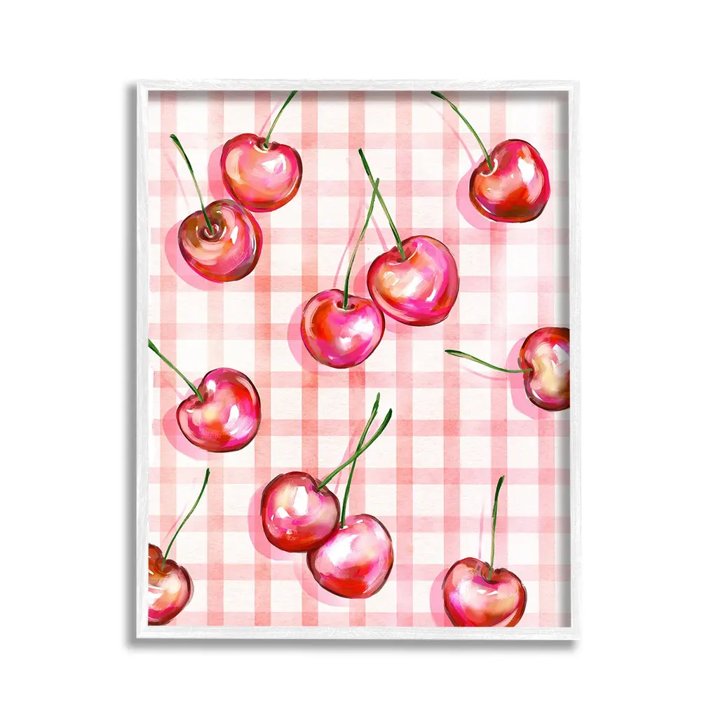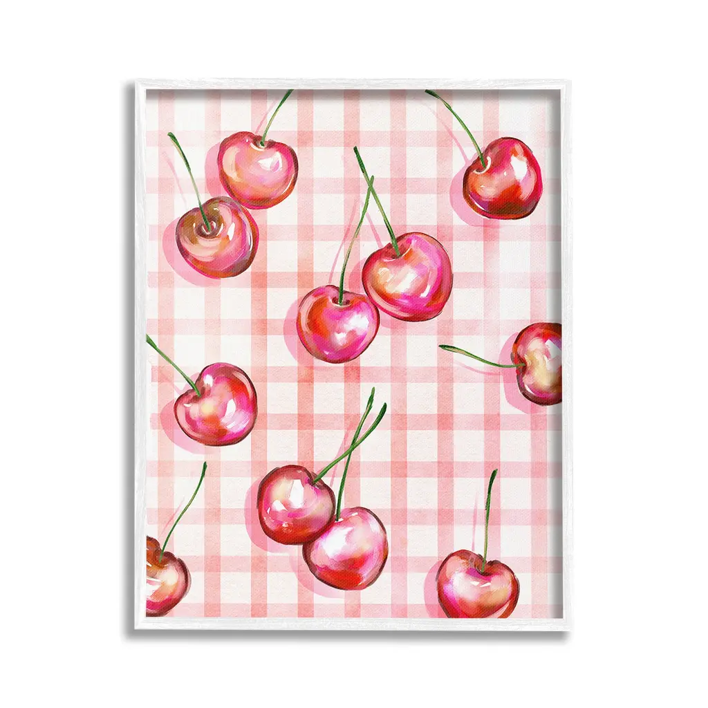 Elevate your home or office to the next level with Stupell Framed Floating Canvas Wall Art. Our premium hand-stretched canvas is mounted securely into a sturdy lightweight frame. The museum-style gap between the wrapped canvas and the box frame gives the illusion of floating artwork. Stupell Wall Art is made in the USA.Features: Dimensions: 17 x 1.7 x 21 Frame, 16 x 1.5 x 20 Canvas ArtFloating Frame Canvas Products are available in sizes 17"x21" and 25"x31". All Floating Frame Canvas Products have a 1.7" Depth.Wall Art is Ready to Hang with Hardware Free Hanging. No Installation required. For Easy Set Up Lean or Layer Artwork on Shelf or Against Wall. Artwork is Permently Fixed into the Frame.Our elevated 1.7" Thick Floating Frame is the perfect complement to our canvas style Wall Art. We use only the highest quality inks in house with industry leading printing solutions. Canvas is hand stretched over a durable wood foundation and then mounted securly into a Modern Box Frame. Made in the USA.Artwork Relates To: Food, Fruit, Plant, Produce, Cherry, Tablecloth, Plaid, Gingham, PatternDesign by Ziwei Li