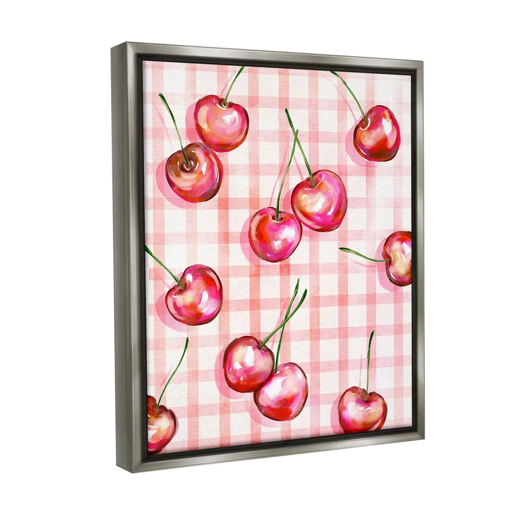 Elevate your home or office to the next level with Stupell Framed Floating Canvas Wall Art. Our premium hand-stretched canvas is mounted securely into a sturdy lightweight frame. The museum-style gap between the wrapped canvas and the box frame gives the illusion of floating artwork. Stupell Wall Art is made in the USA.Features: Dimensions: 17 x 1.7 x 21 Frame, 16 x 1.5 x 20 Canvas ArtFloating Frame Canvas Products are available in sizes 17"x21" and 25"x31". All Floating Frame Canvas Products have a 1.7" Depth.Wall Art is Ready to Hang with Hardware Free Hanging. No Installation required. For Easy Set Up Lean or Layer Artwork on Shelf or Against Wall. Artwork is Permently Fixed into the Frame.Our elevated 1.7" Thick Floating Frame is the perfect complement to our canvas style Wall Art. We use only the highest quality inks in house with industry leading printing solutions. Canvas is hand stretched over a durable wood foundation and then mounted securly into a Modern Box Frame. Made in the USA.Artwork Relates To: Food, Fruit, Plant, Produce, Cherry, Tablecloth, Plaid, Gingham, PatternDesign by Ziwei Li