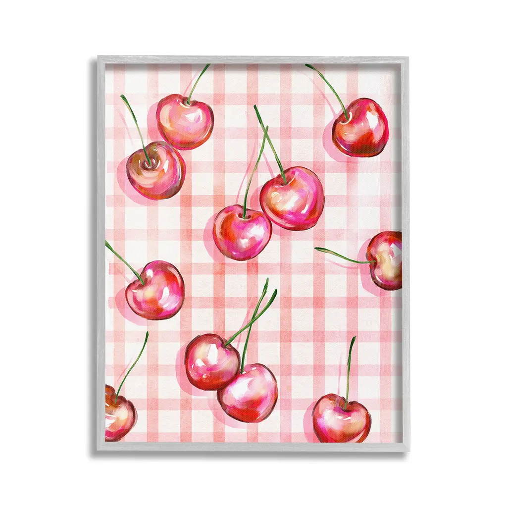 Add dimension to any room with our textured Framed Giclee Artwork. Our framed artwork is securely mounted into a 1.5-inch thick wood grain frame and ready to hang. Frames are available in three alluring styles: black, gray farmhouse and white. In addition, you should check out our oversized options if you want a statement piece. Stupell Wall Art is made in the USA.Features: Dimensions: 11 x 1.5 x 14 FramedFramed Giclee Products are available in the sizes 11"x14", 16"x20" or 24"x30". All Framed Giclee Products have a 1.5" Depth. Wall Art is Ready to Hang with Hardware Free Hanging. No installation required. For Easy Set Up Lean or Layer Artwork on Shelf or Against Wall.Our giclée prints are carefully mounted on a durable MDF backing, and then perfectly finished in a 1.5 inch thick woodgrain frame. Mounted frame colors include black, gray farmhouse and white. Made In USA.Artwork Relates To: Food, Fruit, Plant, Produce, Cherry, Tablecloth, Plaid, Gingham, PatternDesign by Ziwei Li