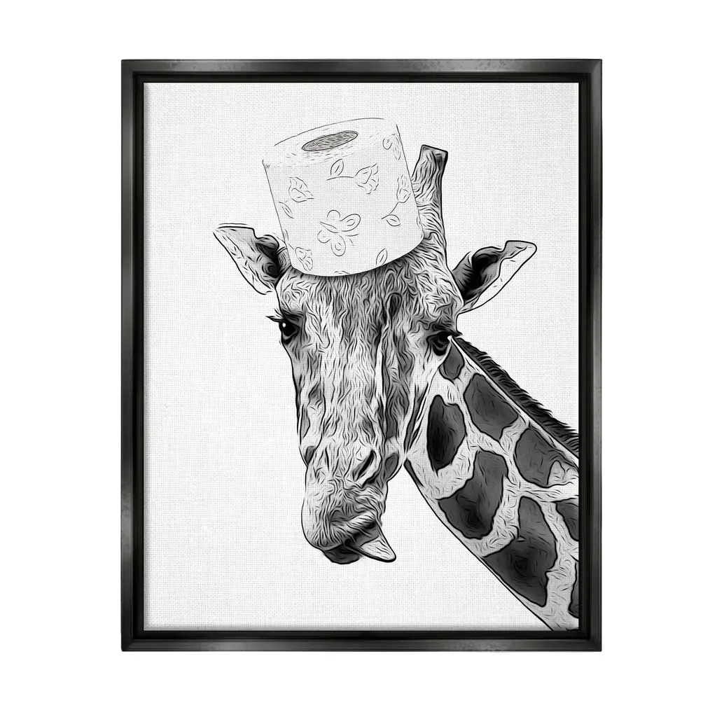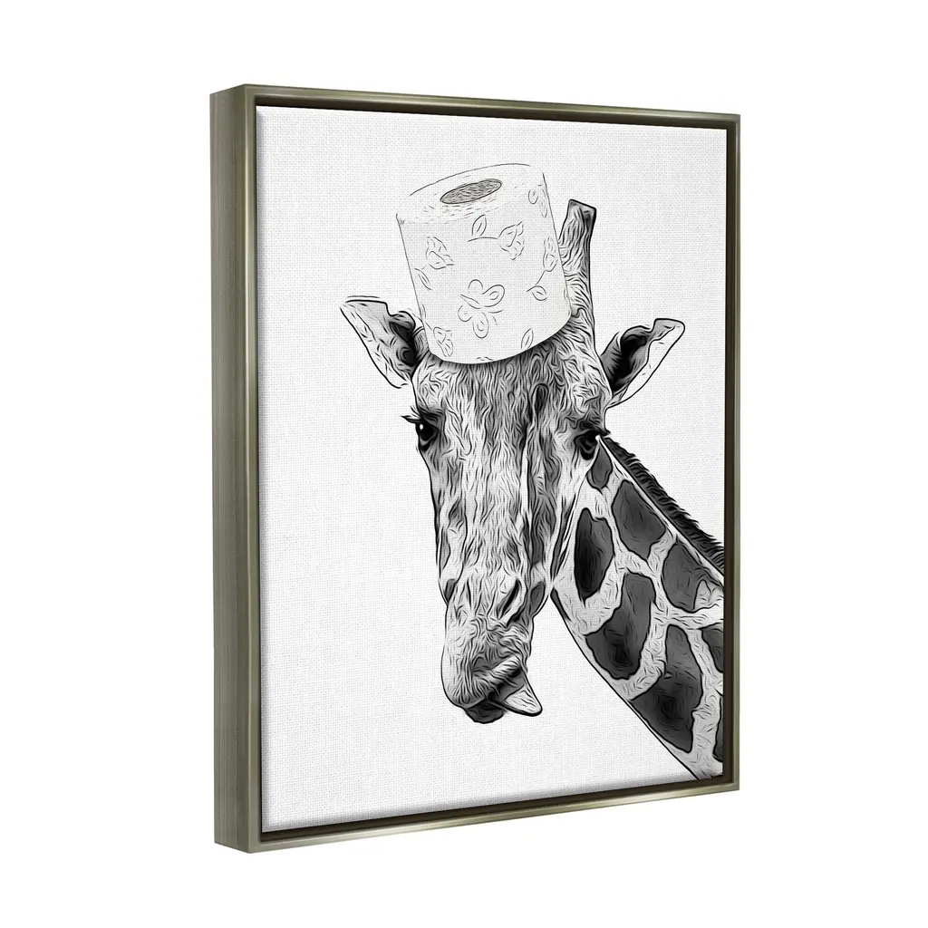 Stupell Giraffe & Toilet Paper Bathroom Framed Floater Canvas Wall Art By Annalisa Latella - 16 X 20 - Grey
