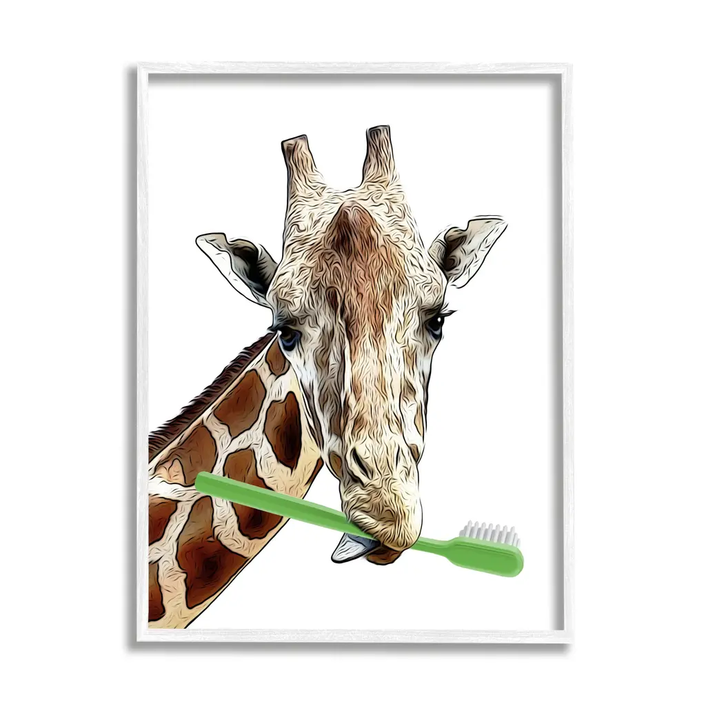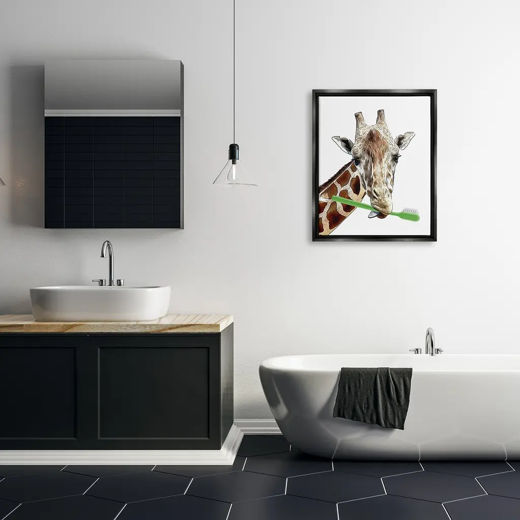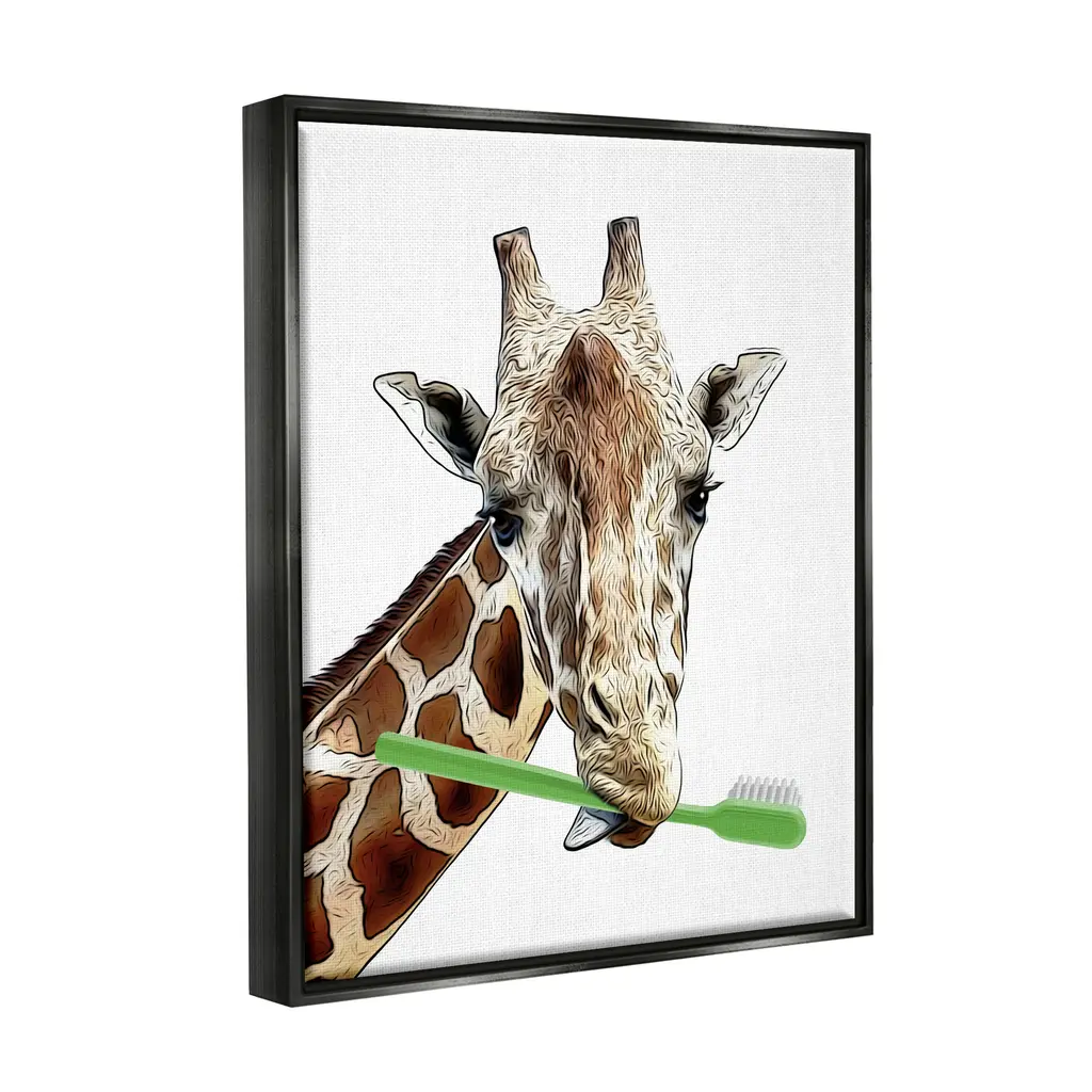 Stupell Giraffe Green Toothbrush Bathroom Framed Floater Canvas Wall Art By Annalisa Latella - 24 X 30 - Black