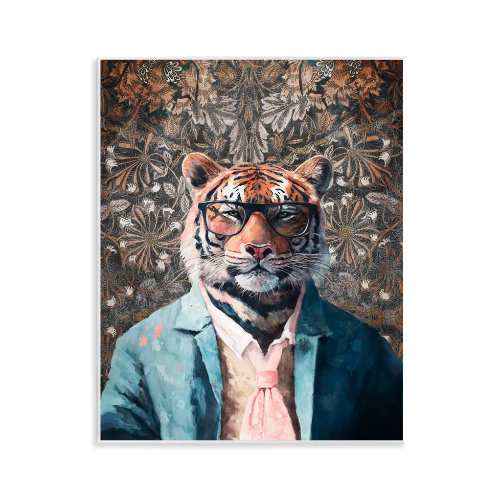 Stupell Giraffe In Floral Suit Framed Floater Canvas Wall Art Design By Lazar Studio - 18 X 18 - Gold
