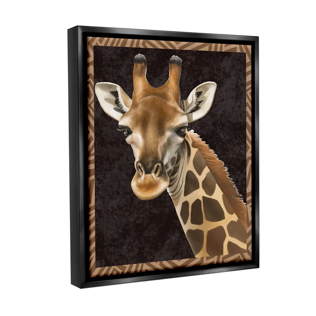 Elevate your home or office to the next level with Stupell Framed Floating Canvas Wall Art. Our premium hand-stretched canvas is mounted securely into a sturdy lightweight frame. The museum-style gap between the wrapped canvas and the box frame gives the illusion of floating artwork. Stupell Wall Art is made in the USA.Features: Dimensions: 17 x 1.7 x 21 Frame, 16 x 1.5 x 20 Canvas ArtFloating Frame Canvas Products are available in sizes 17"x21" and 25"x31". All Floating Frame Canvas Products have a 1.7" Depth.Wall Art is Ready to Hang with Hardware Free Hanging. No Installation required. For Easy Set Up Lean or Layer Artwork on Shelf or Against Wall. Artwork is Permently Fixed into the Frame.Our elevated 1.7" Thick Floating Frame is the perfect complement to our canvas style Wall Art. We use only the highest quality inks in house with industry leading printing solutions. Canvas is hand stretched over a durable wood foundation and then mounted securly into a Modern Box Frame. Made in the USA.Artwork Relates To: Animal, Wildlife, Mammal, Giraffe, Geometric, PatternDesign by Lucca Sheppard