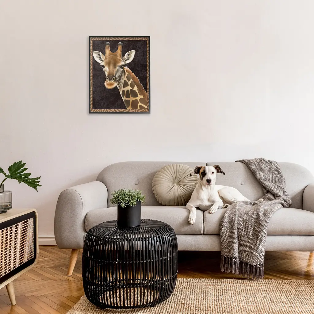 Stupell Giraffe With Geometric Border Framed Giclee Art Design By Lucca Sheppard - 24 X 30 - Black