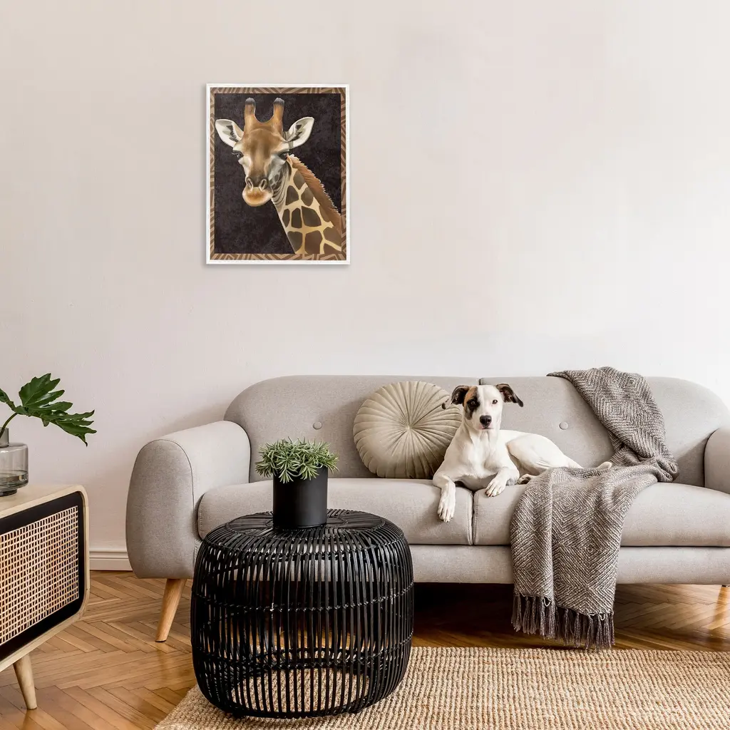 Stupell Giraffe With Geometric Border Framed Giclee Art Design By Lucca Sheppard - 24 X 30 - White