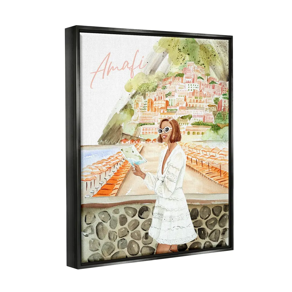 Elevate your home or office to the next level with Stupell Framed Floating Canvas Wall Art. Our premium hand-stretched canvas is mounted securely into a sturdy lightweight frame. The museum-style gap between the wrapped canvas and the box frame gives the illusion of floating artwork. Stupell Wall Art is made in the USA.Features: Dimensions: 17 x 1.7 x 21 Frame, 16 x 1.5 x 20 Canvas ArtFloating Frame Sizes Include Standard: 17 x 1.7 x 21 Oversized: 25 x 1.7 x 31Wall Art is Ready to Hang with Hardware Free Hanging. No installation required. For Easy Set Up Lean or Layer Artwork on Shelf or Against Wall.Our elevated 1.7" Thick Floating Frame is the perfect complement to our canvas style Wall Art. We use only the highest quality inks in house with industry leading printing solutions. Canvas is hand stretched over a durable wood foundation and then mounted securly into a Modern Box Frame. Made in the USA.Artwork Relates To: Female, Person, Woman, Painting, City, Ocean, Town, Amalfi Design by Enya Todd