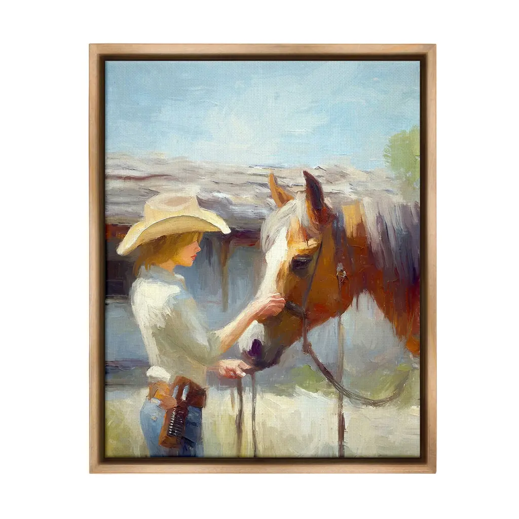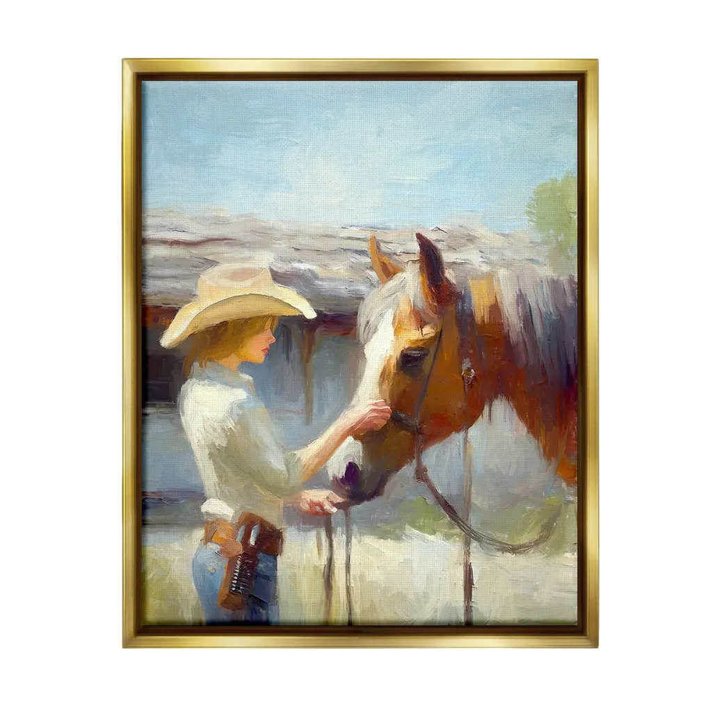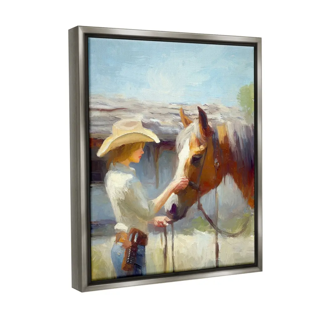 Elevate your home or office to the next level with Stupell Framed Floating Canvas Wall Art. Our premium hand-stretched canvas is mounted securely into a sturdy lightweight frame. The museum-style gap between the wrapped canvas and the box frame gives the illusion of floating artwork. Stupell Wall Art is made in the USA.Features: Dimensions: 17 x 1.7 x 21 Frame, 16 x 1.5 x 20 Canvas ArtFloating Frame Canvas Products are available in sizes 17"x21" and 25"x31". All Floating Frame Canvas Products have a 1.7" Depth.Wall Art is Ready to Hang with Hardware Free Hanging. No Installation required. For Easy Set Up Lean or Layer Artwork on Shelf or Against Wall. Artwork is Permently Fixed into the Frame.Our elevated 1.7" Thick Floating Frame is the perfect complement to our canvas style Wall Art. We use only the highest quality inks in house with industry leading printing solutions. Canvas is hand stretched over a durable wood foundation and then mounted securly into a Modern Box Frame. Made in the USA.Artwork Relates To: Equestrian, Rodeo, Country, Southwestern, Cowgirl, Animal, Horse, AbstractDesign by Ramona Murdock