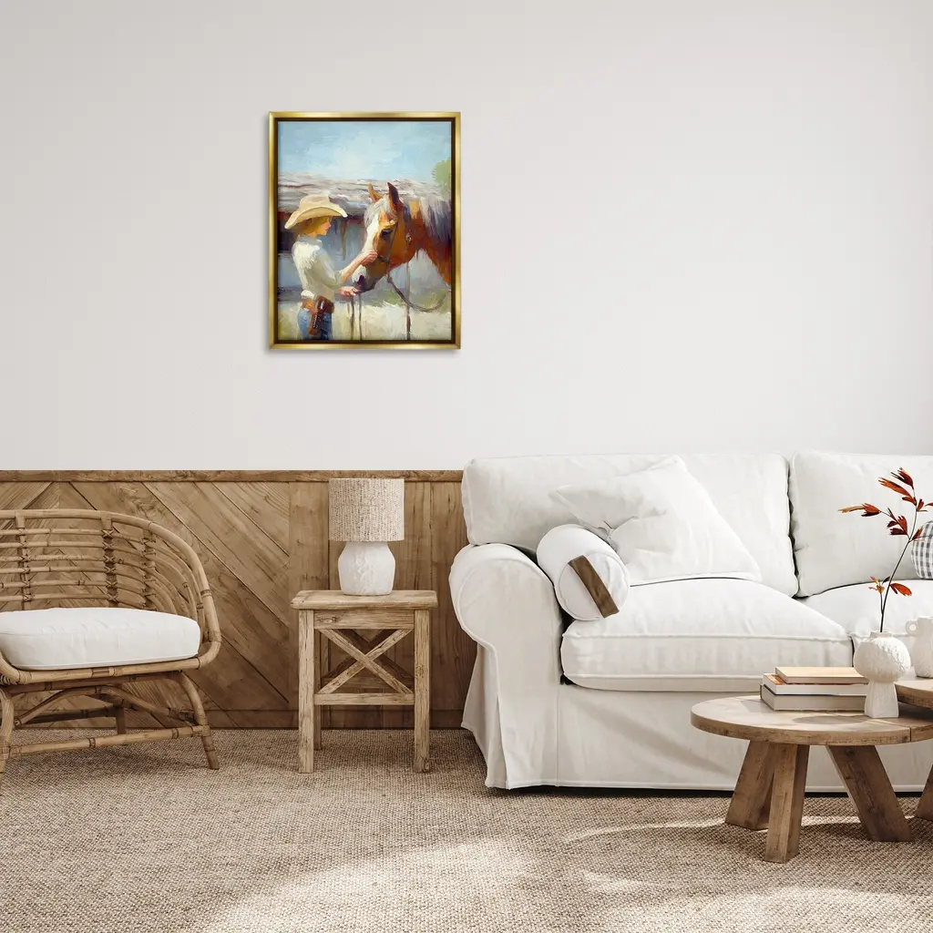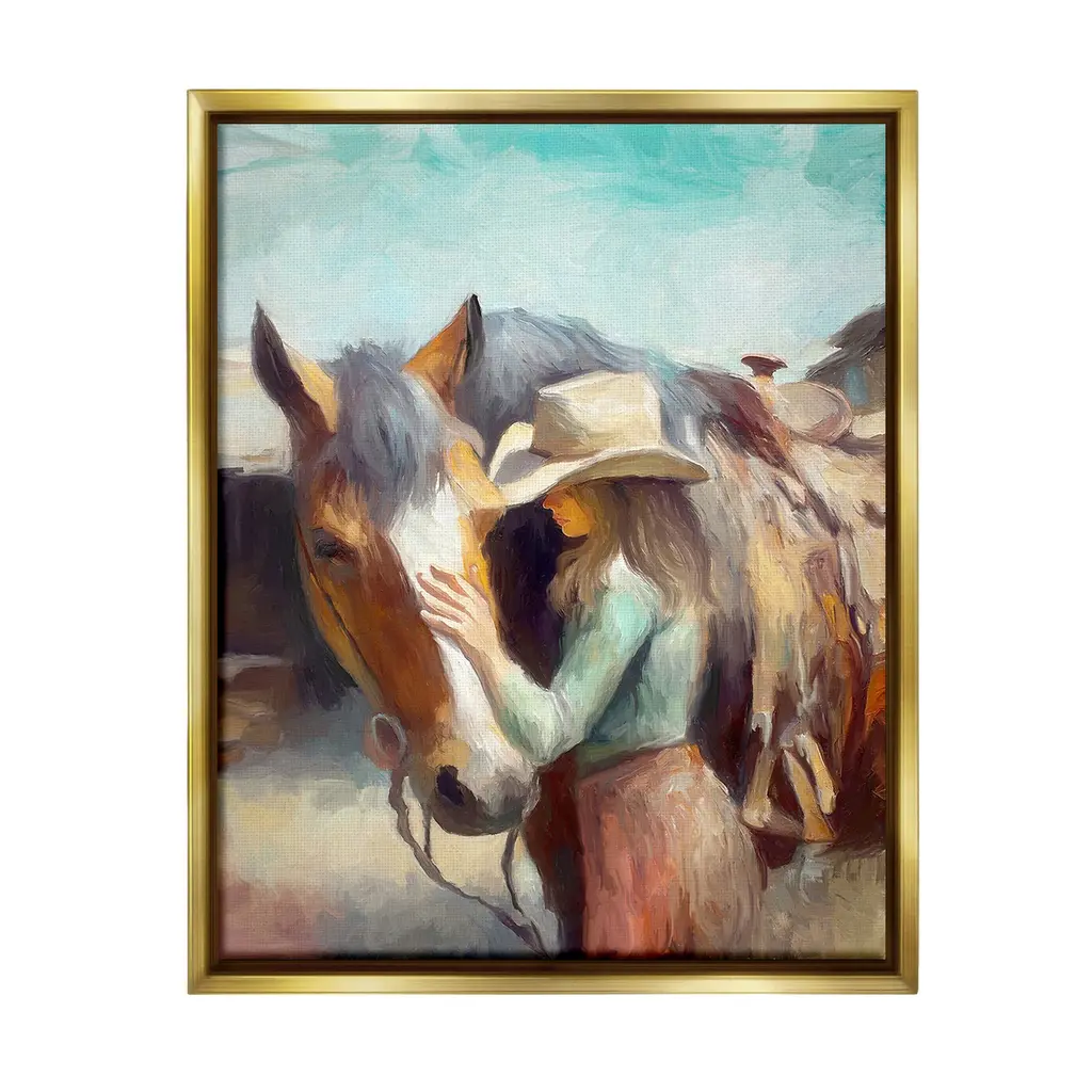 Elevate your home or office to the next level with Stupell Framed Floating Canvas Wall Art. Our premium hand-stretched canvas is mounted securely into a sturdy lightweight frame. The museum-style gap between the wrapped canvas and the box frame gives the illusion of floating artwork. Stupell Wall Art is made in the USA.Features: Dimensions: 17 x 1.7 x 21 Frame, 16 x 1.5 x 20 Canvas ArtFloating Frame Canvas Products are available in sizes 17"x21" and 25"x31". All Floating Frame Canvas Products have a 1.7" Depth.Wall Art is Ready to Hang with Hardware Free Hanging. No Installation required. For Easy Set Up Lean or Layer Artwork on Shelf or Against Wall. Artwork is Permently Fixed into the Frame.Our elevated 1.7" Thick Floating Frame is the perfect complement to our canvas style Wall Art. We use only the highest quality inks in house with industry leading printing solutions. Canvas is hand stretched over a durable wood foundation and then mounted securly into a Modern Box Frame. Made in the USA.Artwork Relates To: Equestrian, Rodeo, Country, Southwestern, Cowgirl, Animal, Horse, AbstractDesign by Ramona Murdock