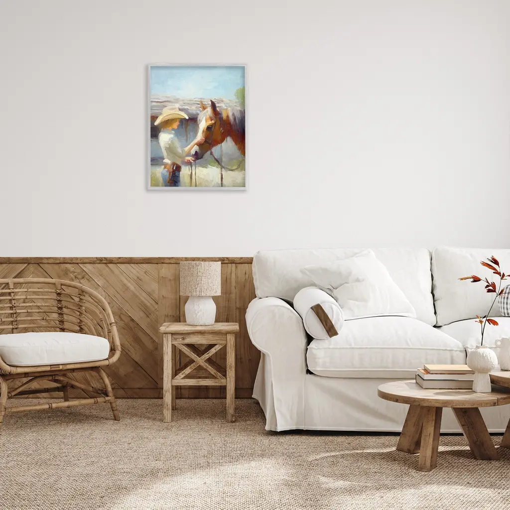Add dimension to any room with our textured Framed Giclee Artwork. Our framed artwork is securely mounted into a 1.5-inch thick wood grain frame and ready to hang. Frames are available in three alluring styles: black, gray farmhouse and white. In addition, you should check out our oversized options if you want a statement piece. Stupell Wall Art is made in the USA.Features: Dimensions: 11 x 1.5 x 14 FramedFramed Giclee Products are available in the sizes 11"x14", 16"x20" or 24"x30". All Framed Giclee Products have a 1.5" Depth. Wall Art is Ready to Hang with Hardware Free Hanging. No installation required. For Easy Set Up Lean or Layer Artwork on Shelf or Against Wall.Our giclée prints are carefully mounted on a durable MDF backing, and then perfectly finished in a 1.5 inch thick woodgrain frame. Mounted frame colors include black, gray farmhouse and white. Made In USA.Artwork Relates To: Equestrian, Rodeo, Country, Southwestern, Cowgirl, Animal, Horse, AbstractDesign by Ramona Murdock