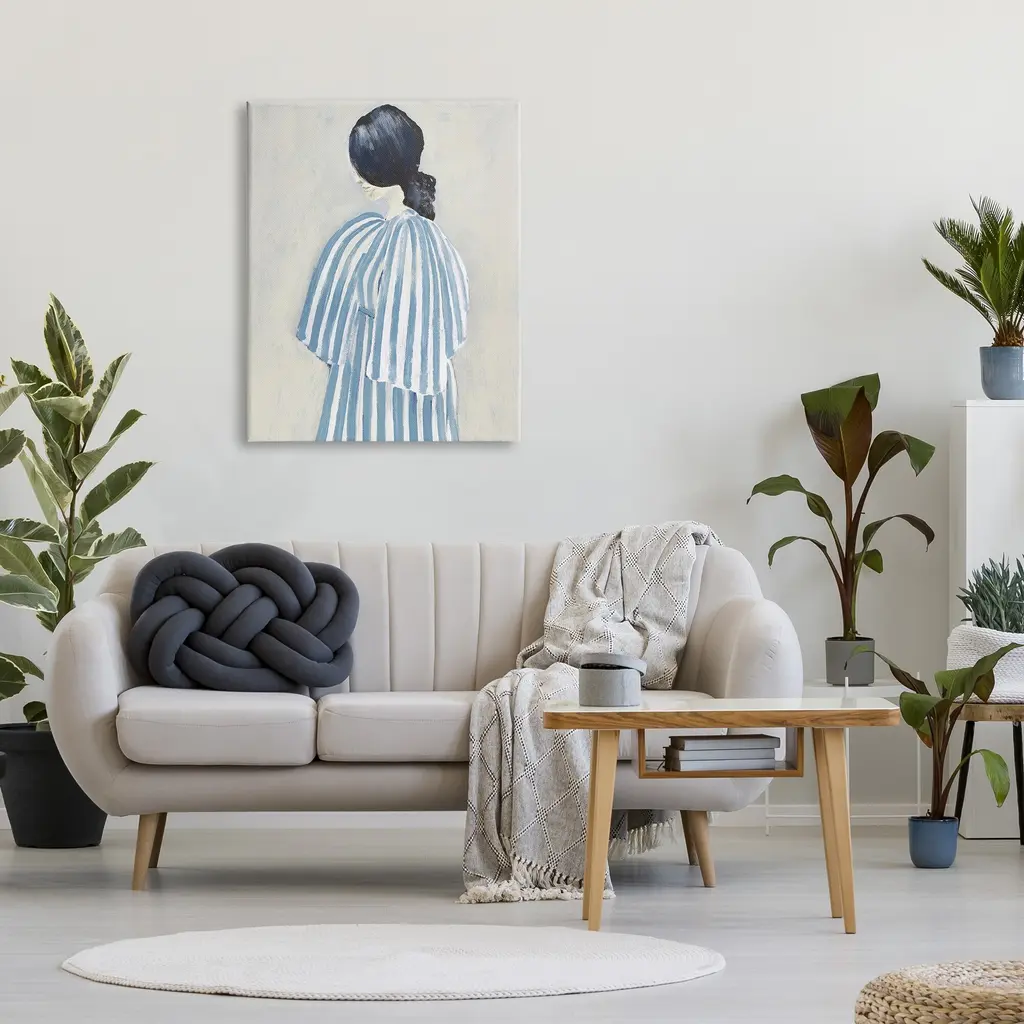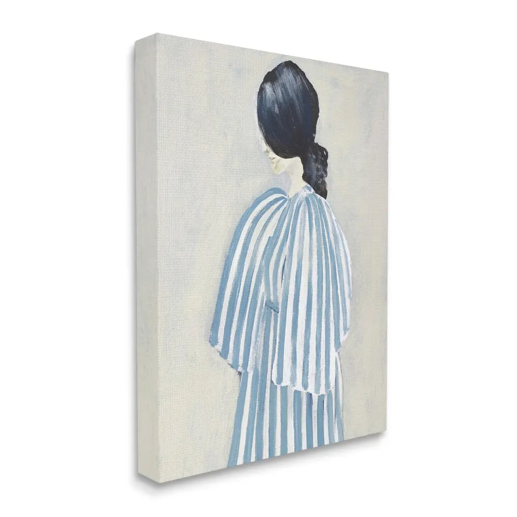 We create our stretched canvas to the highest standards. Using only the highest quality inks and canvas on Mimaki printers, we hand-cut and stretch each piece over a 1.5-inch thick wooden frame for hanging. As a result, the art comes ready to hang on the sturdy ledge with no installation required. Stupell Wall Art is made in the USA.Features: Dimensions: 16 x 1.5 x 20 InchesStretched Canvas Sizes Include Standard: 16 x 1.5 x 20 Large: 20 x 1.5 x 30 X-Large: 30 x 1.5 x 40 Oversized: 36 x 1.5 x 48Wall Art is Ready to Hang with Hardware Free Hanging. No installation required. For Easy Set Up Lean or Layer Artwork on Shelf or Against Wall.Our stretched canvas is created with the highest standards. We use only the highest quality inks and canvas on our in house Mimaki printers, and then hand cut and stretch each piece over a 1.5 inch thick wooden frame for hanging. Made In USA.Artwork Relates To: Fashion, Dress, Female, Person, Woman, Painting, Stripes, PatternDesign by Design Fabrikken