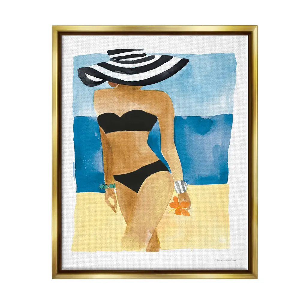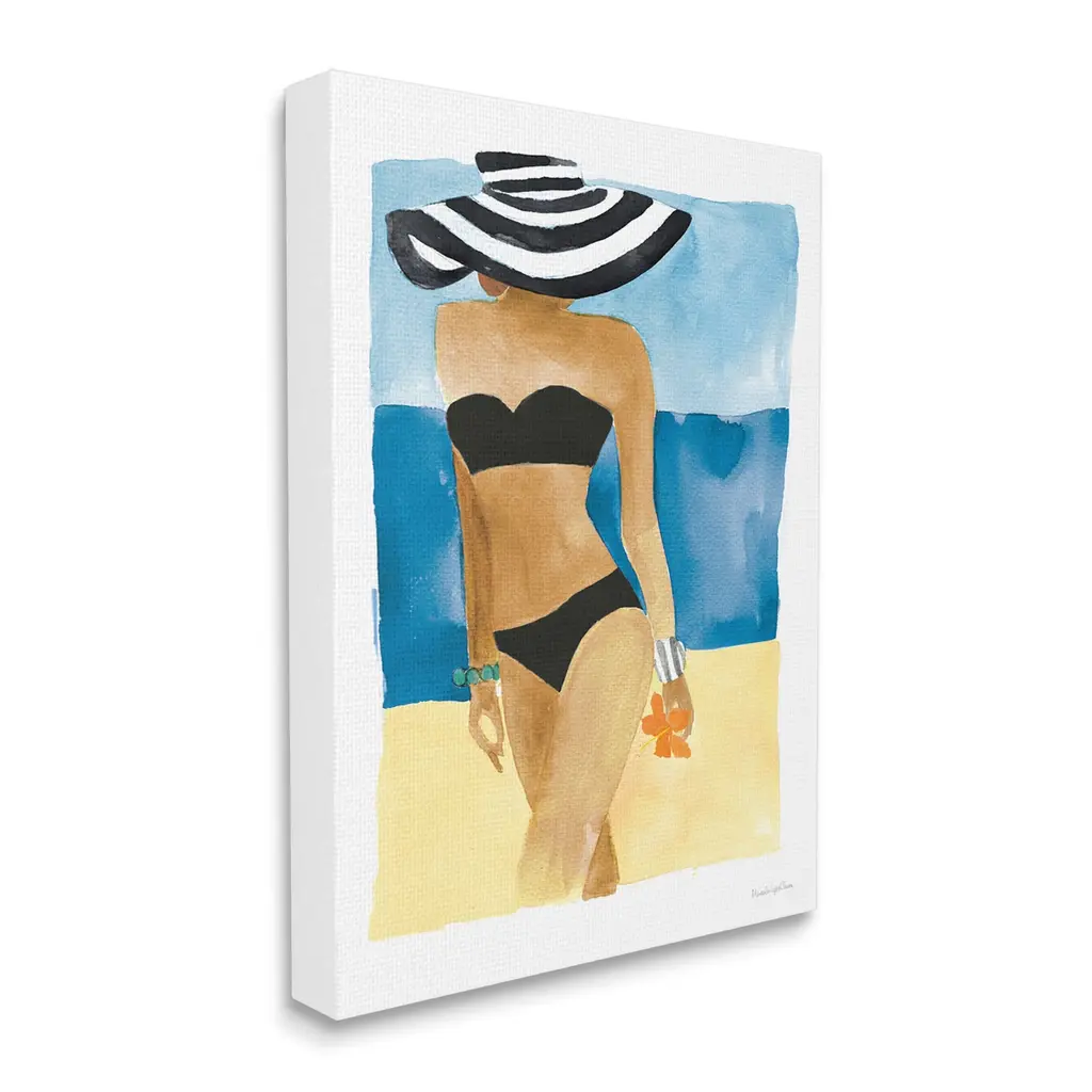 We create our stretched canvas to the highest standards. Using only the highest quality inks and canvas on Mimaki printers, we hand-cut and stretch each piece over a 1.5-inch thick wooden frame for hanging. As a result, the art comes ready to hang on the sturdy ledge with no installation required. Stupell Wall Art is made in the USA.Features: Dimensions: 16 x 1.5 x 20 InchesStretched Canvas Sizes Include Standard: 16 x 1.5 x 20 Large: 20 x 1.5 x 30 X-Large: 30 x 1.5 x 40 Oversized: 36 x 1.5 x 48Wall Art is Ready to Hang with Hardware Free Hanging. No installation required. For Easy Set Up Lean or Layer Artwork on Shelf or Against Wall.Our stretched canvas is created with the highest standards. We use only the highest quality inks and canvas on our in house Mimaki printers, and then hand cut and stretch each piece over a 1.5 inch thick wooden frame for hanging. Made In USA.Artwork Relates To: Painting, Person, Woman, Modern Art, Bikini, Flower, Sun HatDesign by Mercedes Lopez Charro