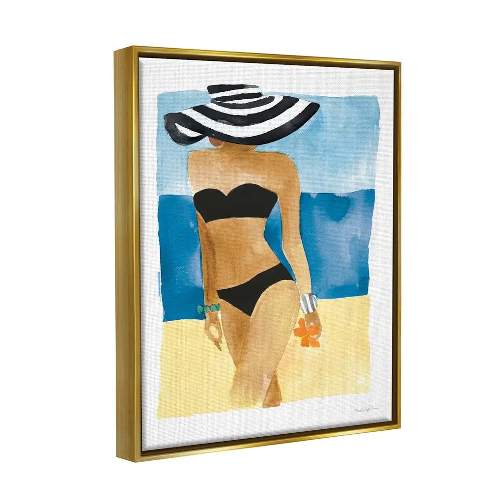 Elevate your home or office to the next level with Stupell Framed Floating Canvas Wall Art. Our premium hand-stretched canvas is mounted securely into a sturdy lightweight frame. The museum-style gap between the wrapped canvas and the box frame gives the illusion of floating artwork. Stupell Wall Art is made in the USA.Features: Dimensions: 17 x 1.7 x 21 Frame, 16 x 1.5 x 20 Canvas ArtFloating Frame Sizes Include Standard: 17 x 1.7 x 21 Oversized: 25 x 1.7 x 31Wall Art is Ready to Hang with Hardware Free Hanging. No installation required. For Easy Set Up Lean or Layer Artwork on Shelf or Against Wall.Our elevated 1.7" Thick Floating Frame is the perfect complement to our canvas style Wall Art. We use only the highest quality inks in house with industry leading printing solutions. Canvas is hand stretched over a durable wood foundation and then mounted securly into a Modern Box Frame. Made in the USA.Artwork Relates To: Painting, Person, Woman, Modern Art, Bikini, Flower, Sun HatDesign by Mercedes Lopez Charro