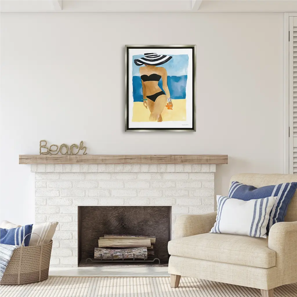 Elevate your home or office to the next level with Stupell Framed Floating Canvas Wall Art. Our premium hand-stretched canvas is mounted securely into a sturdy lightweight frame. The museum-style gap between the wrapped canvas and the box frame gives the illusion of floating artwork. Stupell Wall Art is made in the USA.Features: Dimensions: 17 x 1.7 x 21 Frame, 16 x 1.5 x 20 Canvas ArtFloating Frame Sizes Include Standard: 17 x 1.7 x 21 Oversized: 25 x 1.7 x 31Wall Art is Ready to Hang with Hardware Free Hanging. No installation required. For Easy Set Up Lean or Layer Artwork on Shelf or Against Wall.Our elevated 1.7" Thick Floating Frame is the perfect complement to our canvas style Wall Art. We use only the highest quality inks in house with industry leading printing solutions. Canvas is hand stretched over a durable wood foundation and then mounted securly into a Modern Box Frame. Made in the USA.Artwork Relates To: Painting, Person, Woman, Modern Art, Bikini, Flower, Sun HatDesign by Mercedes Lopez Charro