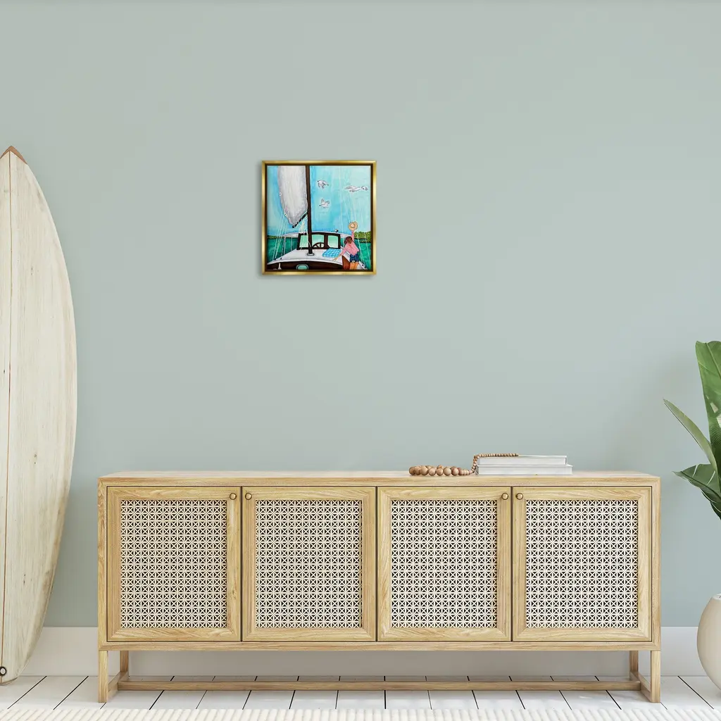 Elevate your home or office to the next level with Stupell Framed Floating Canvas Wall Art. Our premium hand-stretched canvas is mounted securely into a sturdy lightweight frame. The museum-style gap between the wrapped canvas and the box frame gives the illusion of floating artwork. Stupell Wall Art is made in the USA.Features: Dimensions: 18 x 1.7 x 18 Frame, 17 x 1.5 x 17 Canvas ArtFloating Frame Canvas Products are available in sizes 18"x18" and 25"x25". All Floating Frame Canvas Products have a 1.7" Depth.Wall Art is Ready to Hang with Hardware Free Hanging. No Installation required. For Easy Set Up Lean or Layer Artwork on Shelf or Against Wall. Artwork is Permently Fixed into the Frame.Our elevated 1.7" Thick Floating Frame is the perfect complement to our canvas style Wall Art. We use only the highest quality inks in house with industry leading printing solutions. Canvas is hand stretched over a durable wood foundation and then mounted securly into a Modern Box Frame. Made in the USA.Artwork Relates To: Summer, Person, Sea, Water, Boat, Beach, Coast, Shoreline, Sailboat, Beach Chair, Woman, Animal, SeagullDesign by Ale Saiz Studio