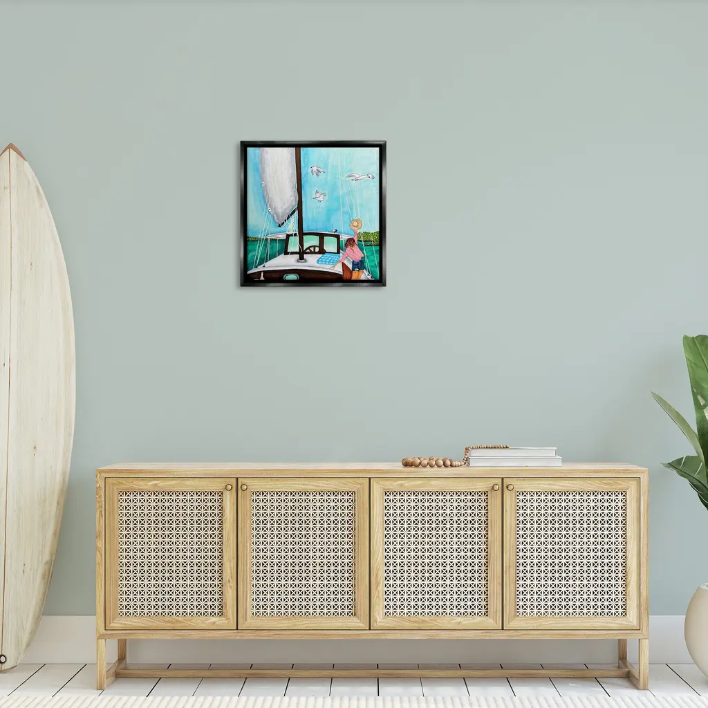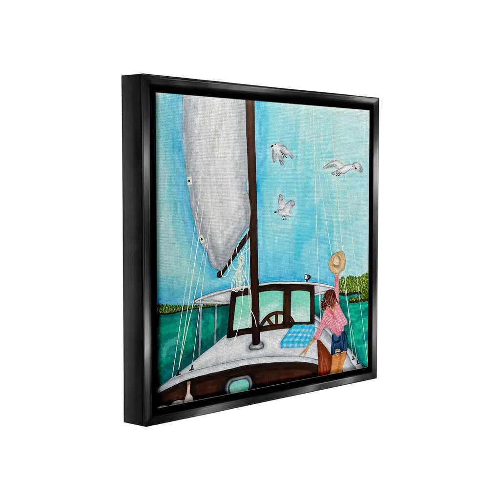 Elevate your home or office to the next level with Stupell Framed Floating Canvas Wall Art. Our premium hand-stretched canvas is mounted securely into a sturdy lightweight frame. The museum-style gap between the wrapped canvas and the box frame gives the illusion of floating artwork. Stupell Wall Art is made in the USA.Features: Dimensions: 18 x 1.7 x 18 Frame, 17 x 1.5 x 17 Canvas ArtFloating Frame Canvas Products are available in sizes 18"x18" and 25"x25". All Floating Frame Canvas Products have a 1.7" Depth.Wall Art is Ready to Hang with Hardware Free Hanging. No Installation required. For Easy Set Up Lean or Layer Artwork on Shelf or Against Wall. Artwork is Permently Fixed into the Frame.Our elevated 1.7" Thick Floating Frame is the perfect complement to our canvas style Wall Art. We use only the highest quality inks in house with industry leading printing solutions. Canvas is hand stretched over a durable wood foundation and then mounted securly into a Modern Box Frame. Made in the USA.Artwork Relates To: Summer, Person, Sea, Water, Boat, Beach, Coast, Shoreline, Sailboat, Beach Chair, Woman, Animal, SeagullDesign by Ale Saiz Studio