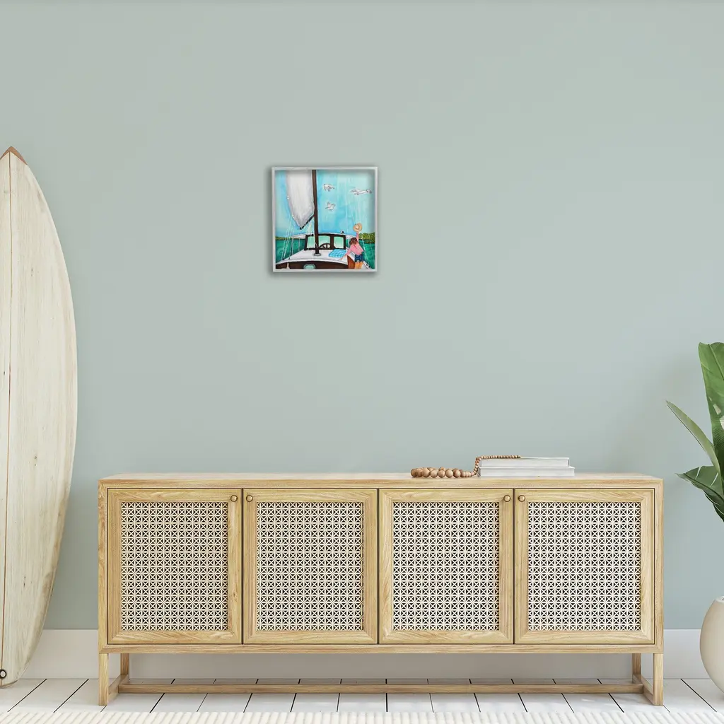 Add dimension to any room with our textured Framed Giclee Artwork. Our framed artwork is securely mounted into a 1.5-inch thick wood grain frame and ready to hang. Frames are available in three alluring styles: black, gray farmhouse and white. In addition, you should check out our oversized options if you want a statement piece. Stupell Wall Art is made in the USA.Features: Dimensions: 12 x 1.5 x 12 FramedFramed Giclee Product Sizes Include 12"x12", 17"x17", and 24"x24". Framed Giclee Products have a 1.5" Depth. Wall Art is Ready to Hang with Hardware Free Hanging. No installation required. For Easy Set Up Lean or Layer Artwork on Shelf or Against Wall.Our giclée prints are carefully mounted on a durable MDF backing, and then perfectly finished in a 1.5 inch thick woodgrain frame. Mounted frame colors include black, gray farmhouse and white. Made In USA.Artwork Relates To: Summer, Person, Sea, Water, Boat, Beach, Coast, Shoreline, Sailboat, Beach Chair, Woman, Animal, SeagullDesign by Ale Saiz Studio