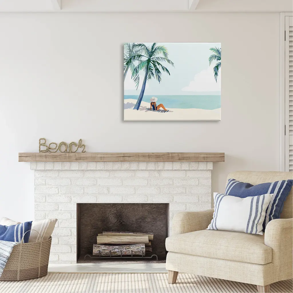 We create our stretched canvas to the highest standards. Using only the highest quality inks and canvas on Mimaki printers, we hand-cut and stretch each piece over a 1.5-inch thick wooden frame for hanging. As a result, the art comes ready to hang on the sturdy ledge with no installation required. Stupell Wall Art is made in the USA.Features: Dimensions: 20 x 1.5 x 16 InchesStretched Canvas Sizes Include Standard: 20 x 1.5 x 16 Large: 30 x 1.5 x 20 X-Large: 40 x 1.5 x 30 Oversized: 48 x 1.5 x 36Wall Art is Ready to Hang - No Installation or Hardware Needed. For Easy Set Up Lean or Layer Artwork on Shelf or Against Wall.Our stretched canvas is created with the highest standards. We use only the highest quality inks and canvas on our in house Mimaki printers, and then hand cut and stretch each piece over a 1.5 inch thick wooden frame for hanging. Made In USA.Artwork Relates To: Painting, Sea, Water, Beach, Coast, Shoreline, Person, Summer, Palm Tree, Woman, TropicalDesign by Victoria Barnes