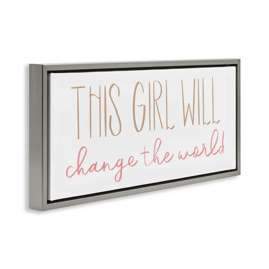 Elevate your home or office to the next level with Stupell Framed Floating Canvas Wall Art. Our premium hand-stretched canvas is mounted securely into a sturdy lightweight frame. The museum-style gap between the wrapped canvas and the box frame gives the illusion of floating artwork. Stupell Wall Art is made in the USA.Features: Dimensions: 25 x 1.7 x 11 Frame, 24 x 1.5 x 10 Canvas ArtFloating Frame Canvas Products are available in sizes 25"x11" and 31"x14". All Floating Frame Canvas Products have a 1.7" Depth.Wall Art is Ready to Hang with Hardware Free Hanging. No Installation required. For Easy Set Up Lean or Layer Artwork on Shelf or Against Wall. Artwork is Permently Fixed into the Frame.Our elevated 1.7" Thick Floating Frame is the perfect complement to our canvas style Wall Art. We use only the highest quality inks in house with industry leading printing solutions. Canvas is hand stretched over a durable wood foundation and then mounted securly into a Modern Box Frame. Made in the USA.Artwork Relates To: Kids, Girls, Inspirational, Motivational, DaughterDesign by Sd Graphics Studio
