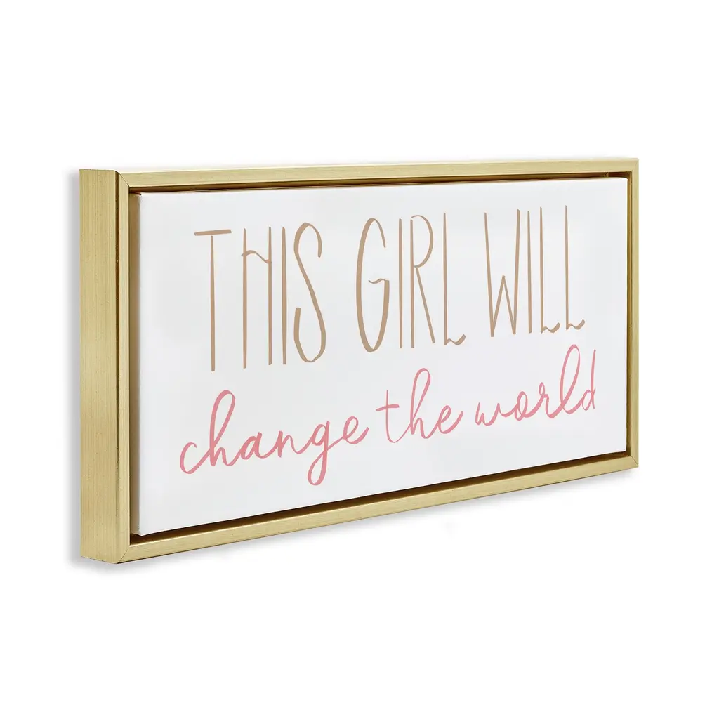 Elevate your home or office to the next level with Stupell Framed Floating Canvas Wall Art. Our premium hand-stretched canvas is mounted securely into a sturdy lightweight frame. The museum-style gap between the wrapped canvas and the box frame gives the illusion of floating artwork. Stupell Wall Art is made in the USA.Features: Dimensions: 25 x 1.7 x 11 Frame, 24 x 1.5 x 10 Canvas ArtFloating Frame Canvas Products are available in sizes 25"x11" and 31"x14". All Floating Frame Canvas Products have a 1.7" Depth.Wall Art is Ready to Hang with Hardware Free Hanging. No Installation required. For Easy Set Up Lean or Layer Artwork on Shelf or Against Wall. Artwork is Permently Fixed into the Frame.Our elevated 1.7" Thick Floating Frame is the perfect complement to our canvas style Wall Art. We use only the highest quality inks in house with industry leading printing solutions. Canvas is hand stretched over a durable wood foundation and then mounted securly into a Modern Box Frame. Made in the USA.Artwork Relates To: Kids, Girls, Inspirational, Motivational, DaughterDesign by Sd Graphics Studio