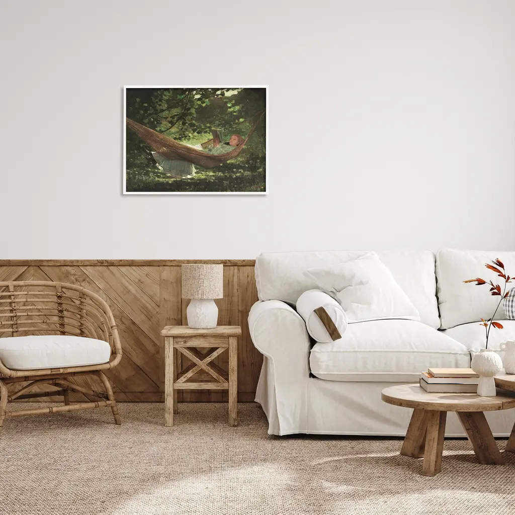 It is time to set up your room with of our fresh new 'Framed Giclee Textured Wall Art' pieces. You may have seen our Wooden or Canvas products, but our framed products are now available in three alluring styles: black, gray farmhouse and white. Our textured artwork will add more depth and dimension to any space. Each piece is mounted with a 1.5 inch thick wood grain frame that is ready to hang! Looking for a statement piece? We have oversized artwork available.Features: Wall Art is Ready to Hang - No Installation or Hardware Needed. For Easy Set Up Lean or Layer Artwork on Shelf or Against Wall.Our giclee prints are carefully mounted on a durable MDF backing, and then perfectly finished in a 1.5 inch thick woodgrain frame. Frame colors include black, gray farmhouse and white. Made In USA.Artwork Relates To: Furniture; Hammock; Person; Human; Design by Lettered and Lined